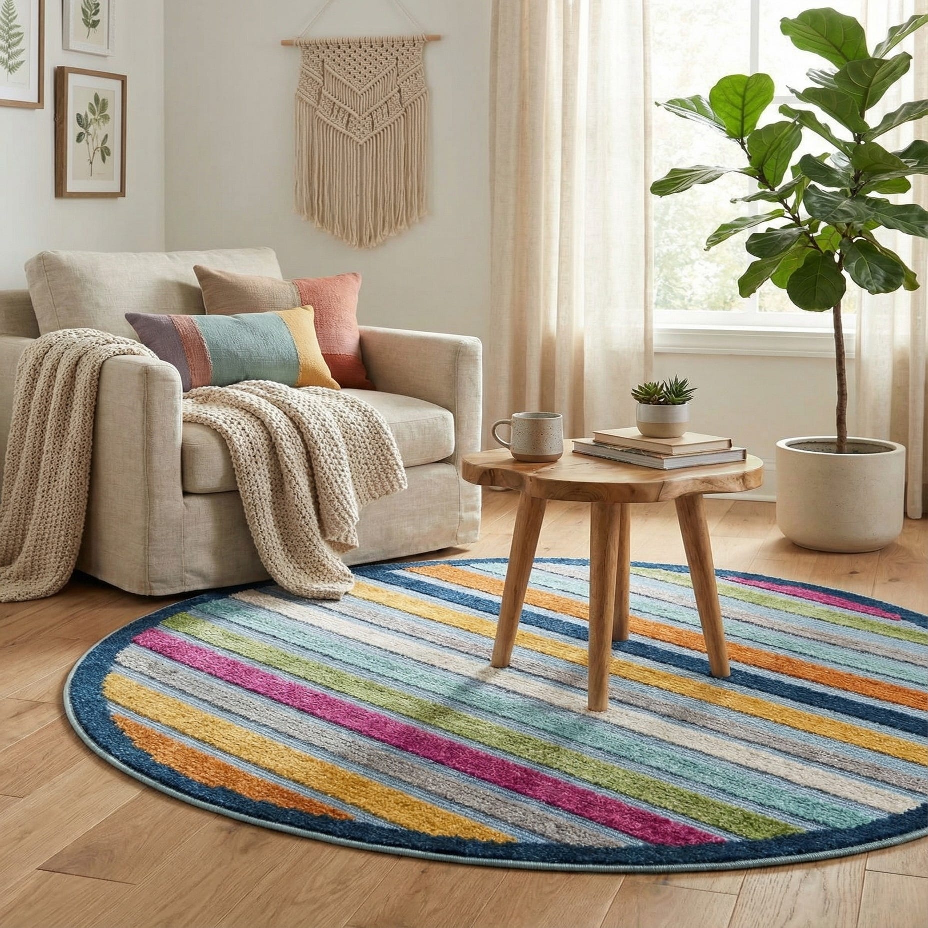 3' 3 x 3' 3 Washable Aruba Indoor / Outdoor Round Rug