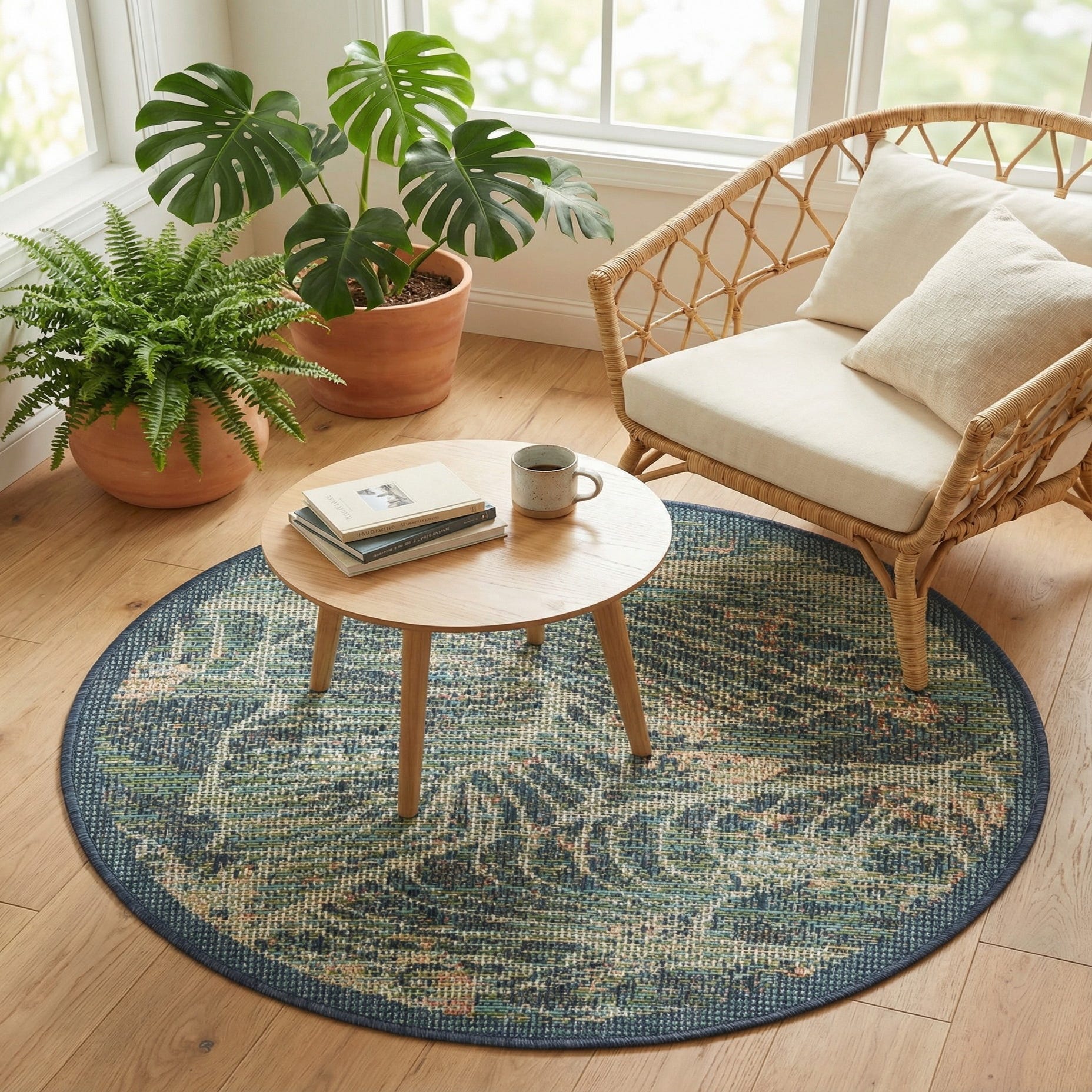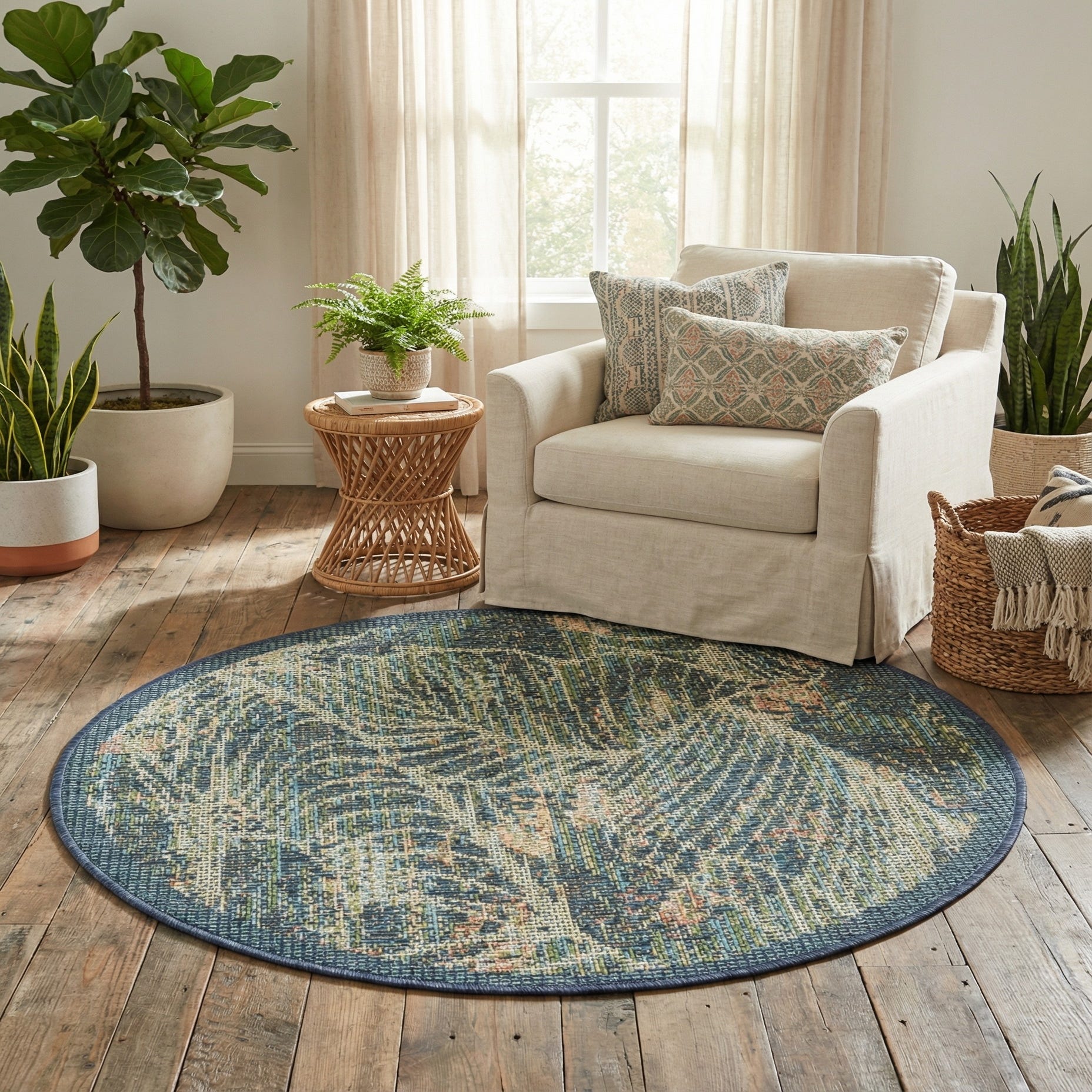 3' 3 x 3' 3 Washable Baja Indoor / Outdoor Round Rug