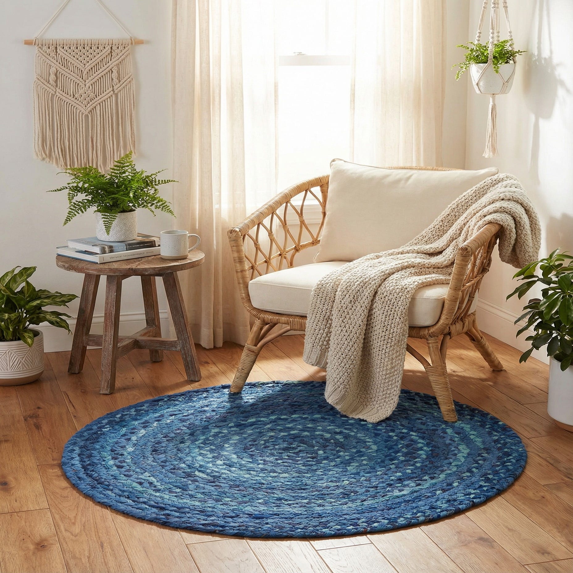 3' 3 x 3' 3 Hand Braided Chindi Round Rug