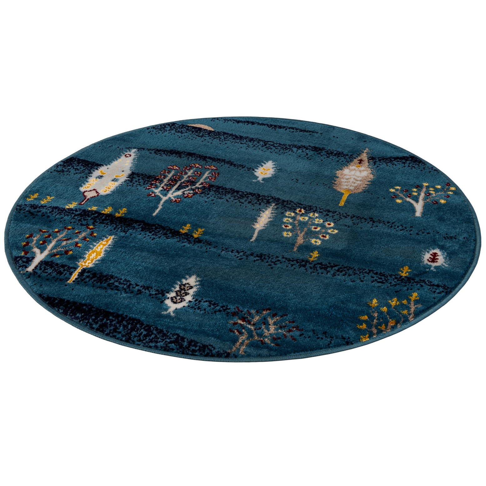 Primary color is Blue. Colors in this rug include: Blue, Beige, Ivory, Red, Yellow.