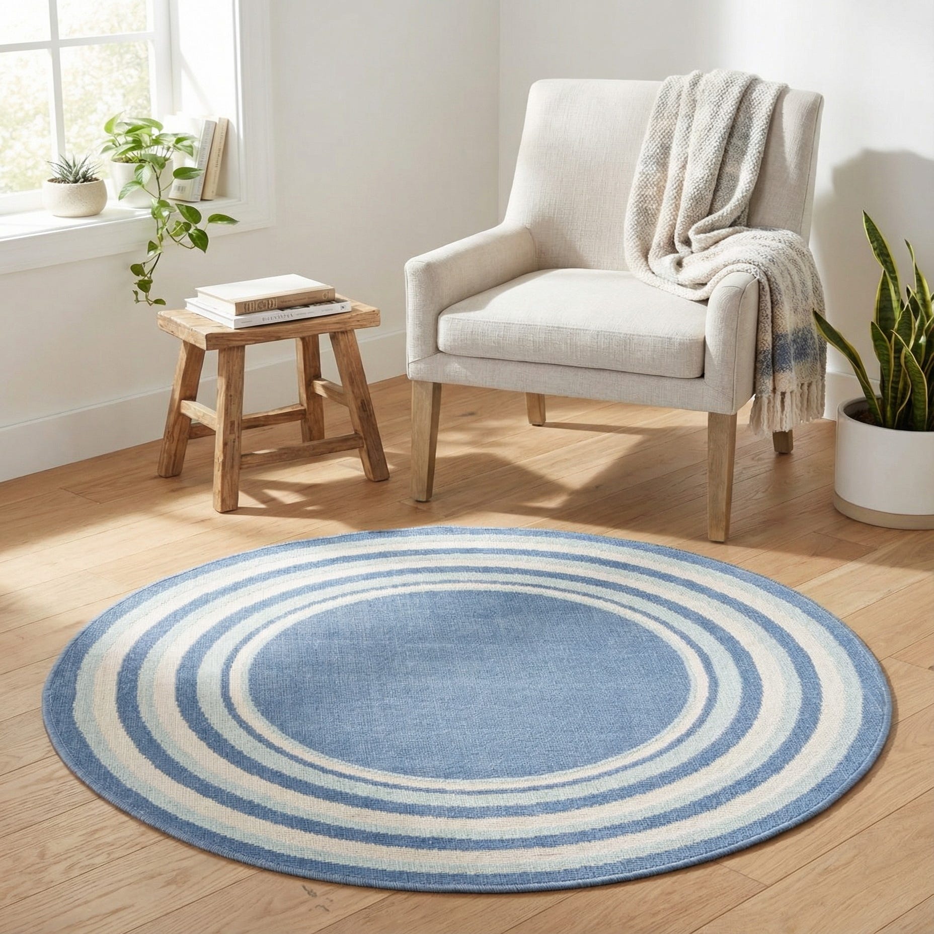 Primary color is Blue. Colors in this rug include: Blue, Light Blue, Ivory.