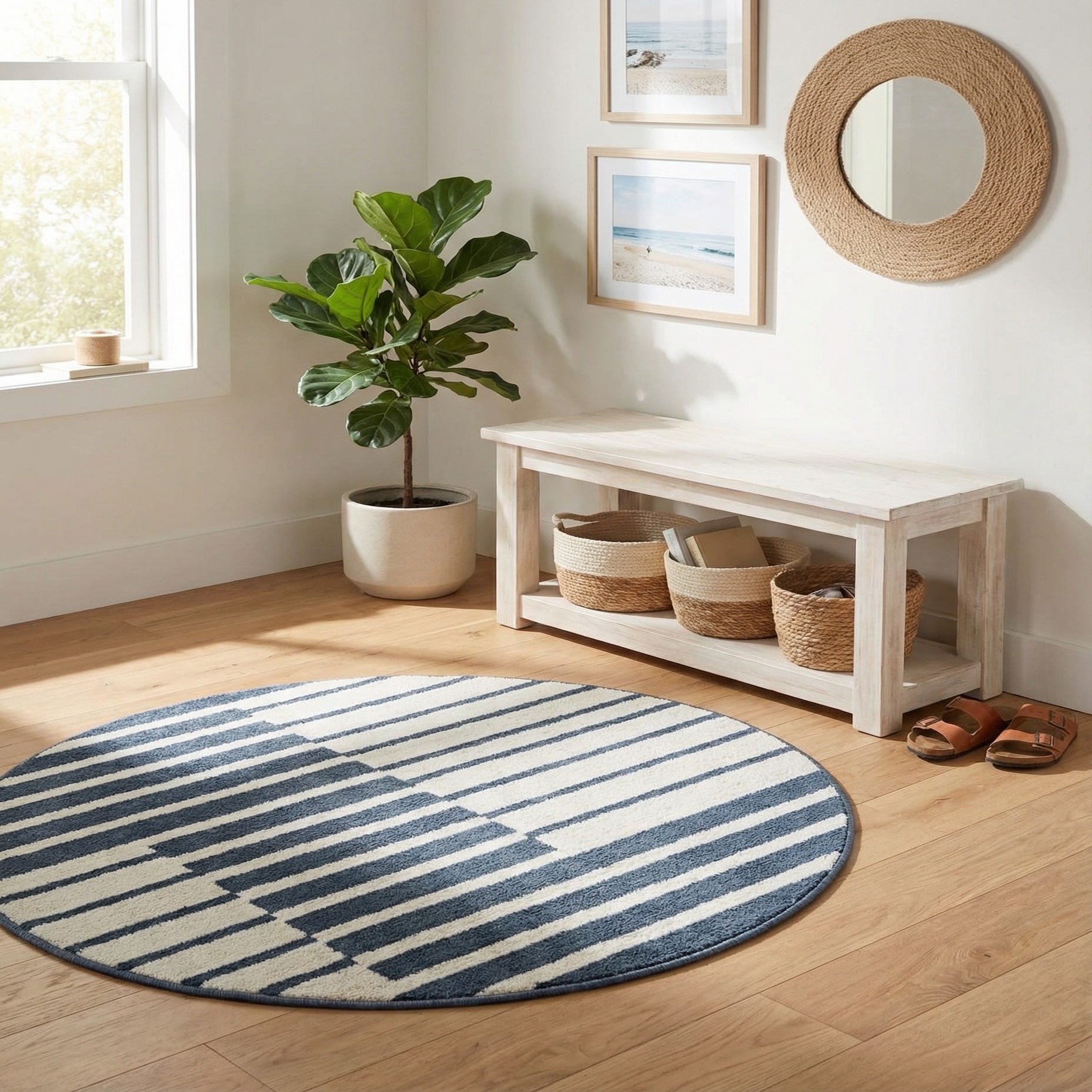 Primary color is Blue. Colors in this rug include: Blue, Ivory.
