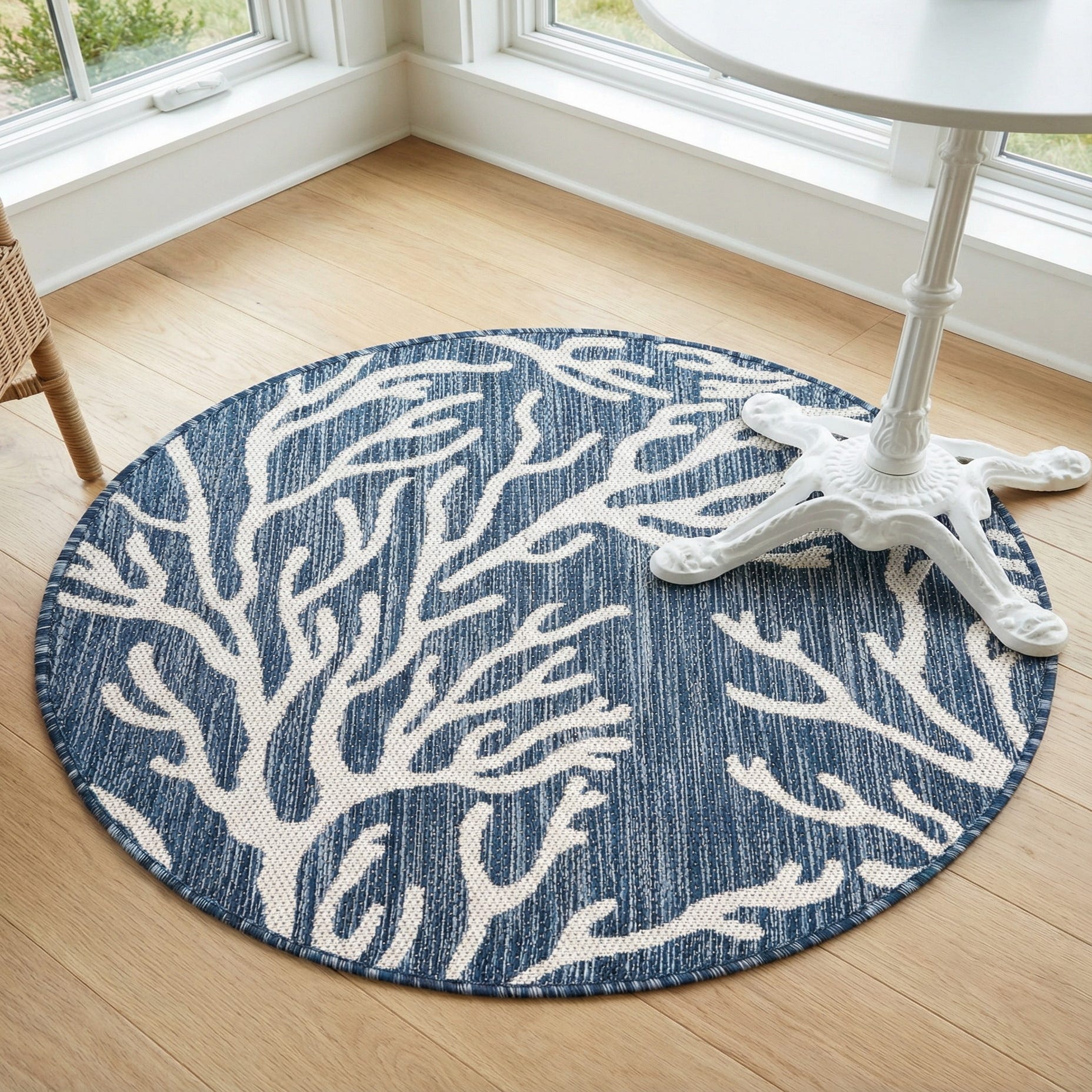 3' x 3' Washable Coastal Indoor / Outdoor Round Rug