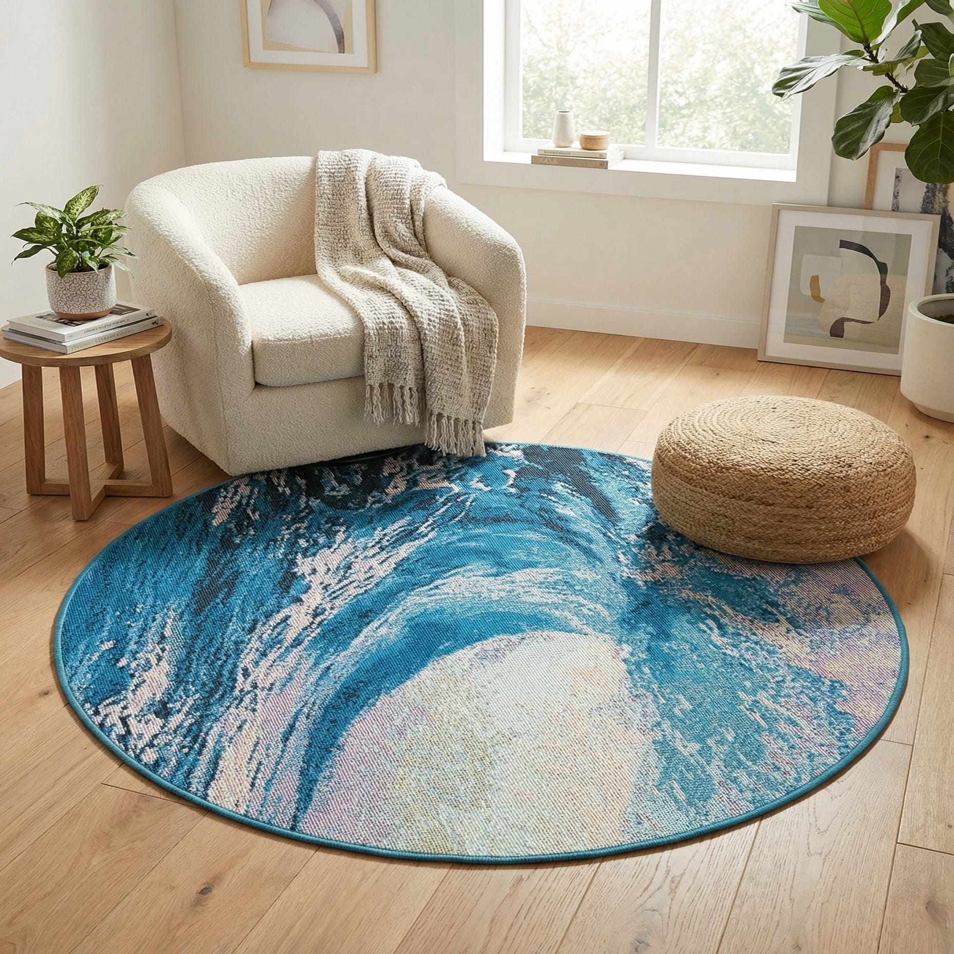 3' 3 x 3' 3 Washable Modern Indoor / Outdoor Round Rug