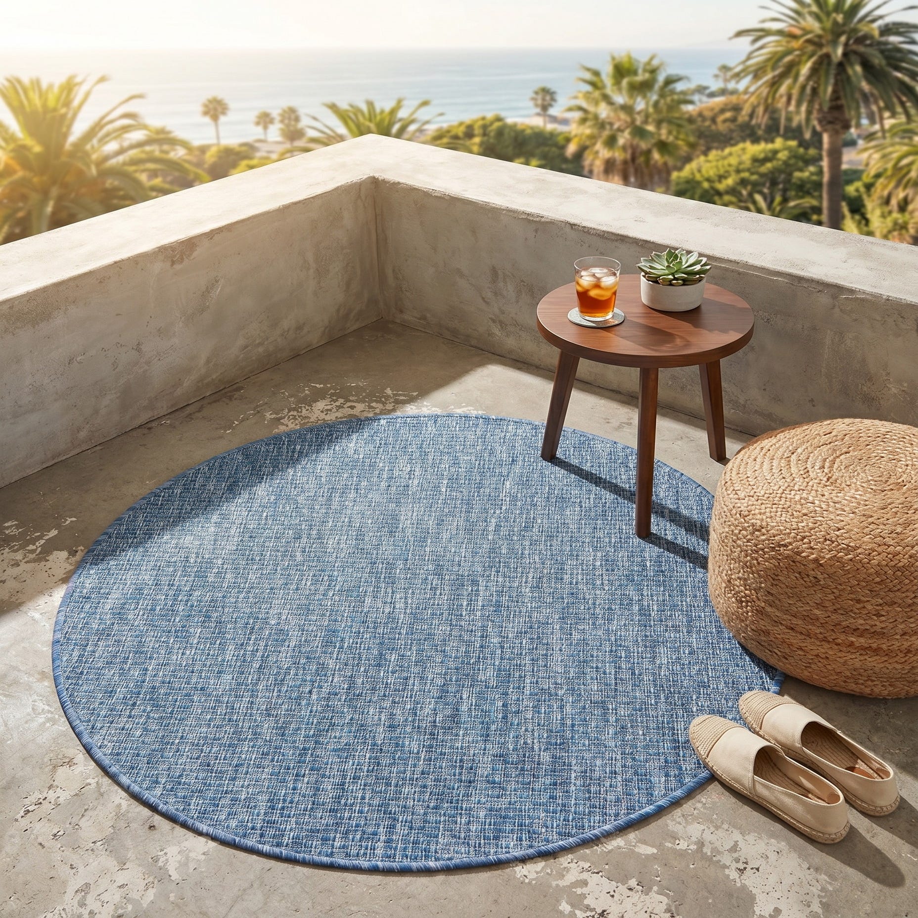 3' x 3' Easy-Clean Solid Indoor / Outdoor Round Rug