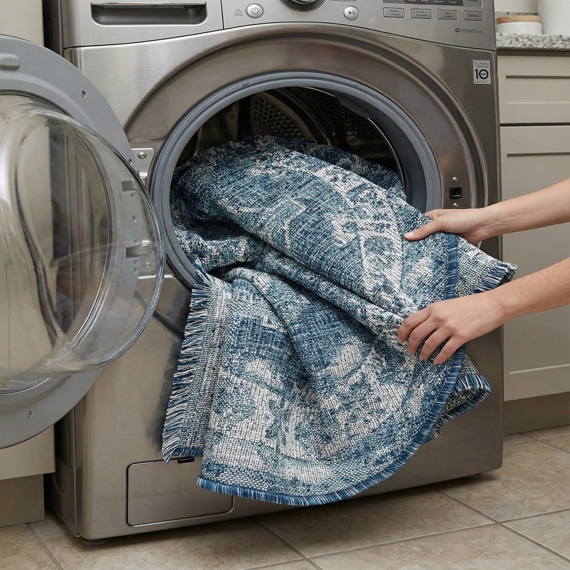 Detail image of 3' x 3'  Washable Traditional Indoor / Outdoor Round Rug