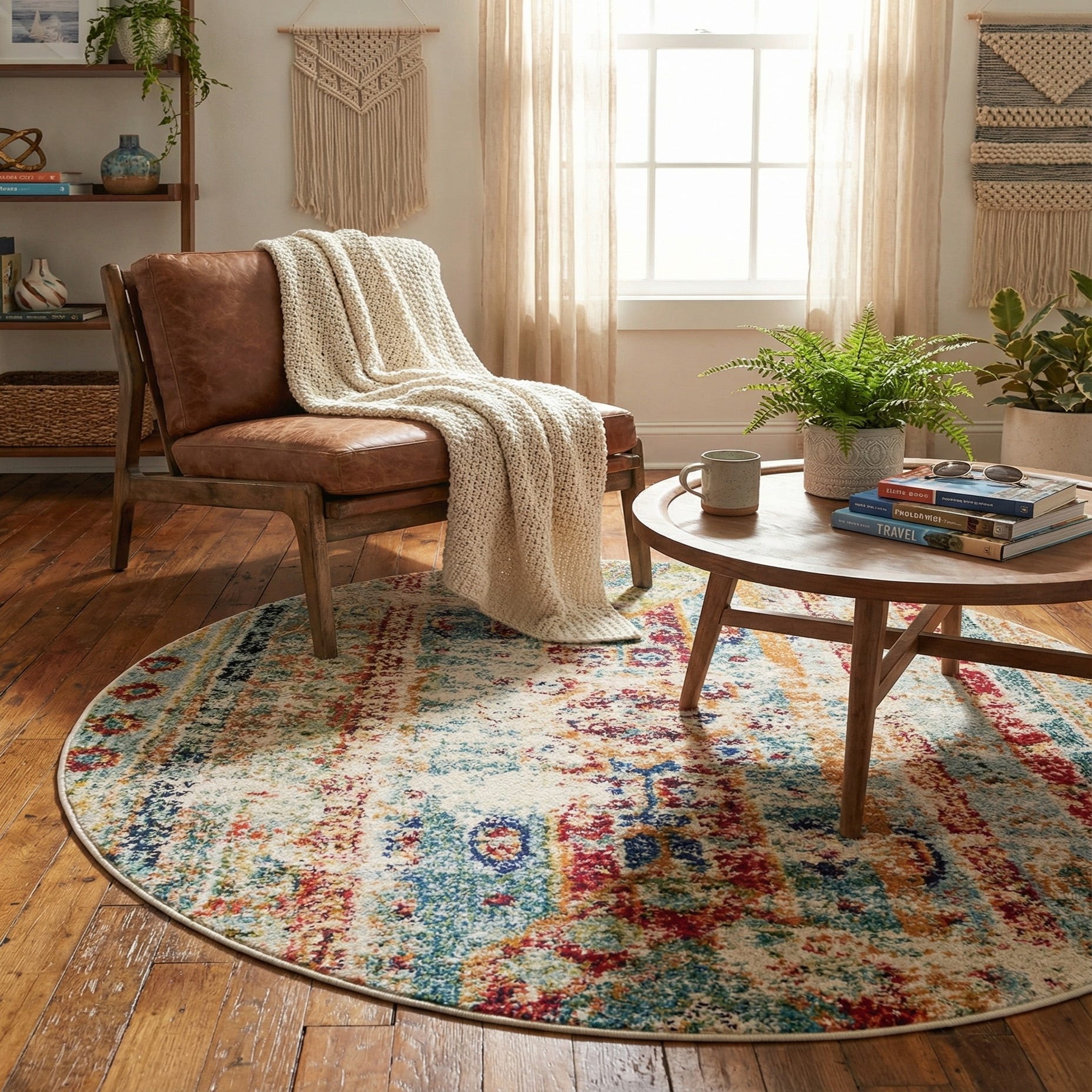 Detail image of 3' 3 x 3' 3  Washable Santa Fe Round Rug