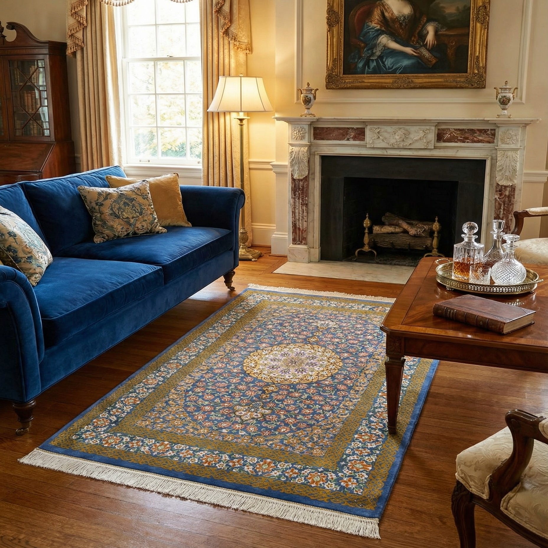 Primary image 2' 7 x 4' Ghom Silk Rug