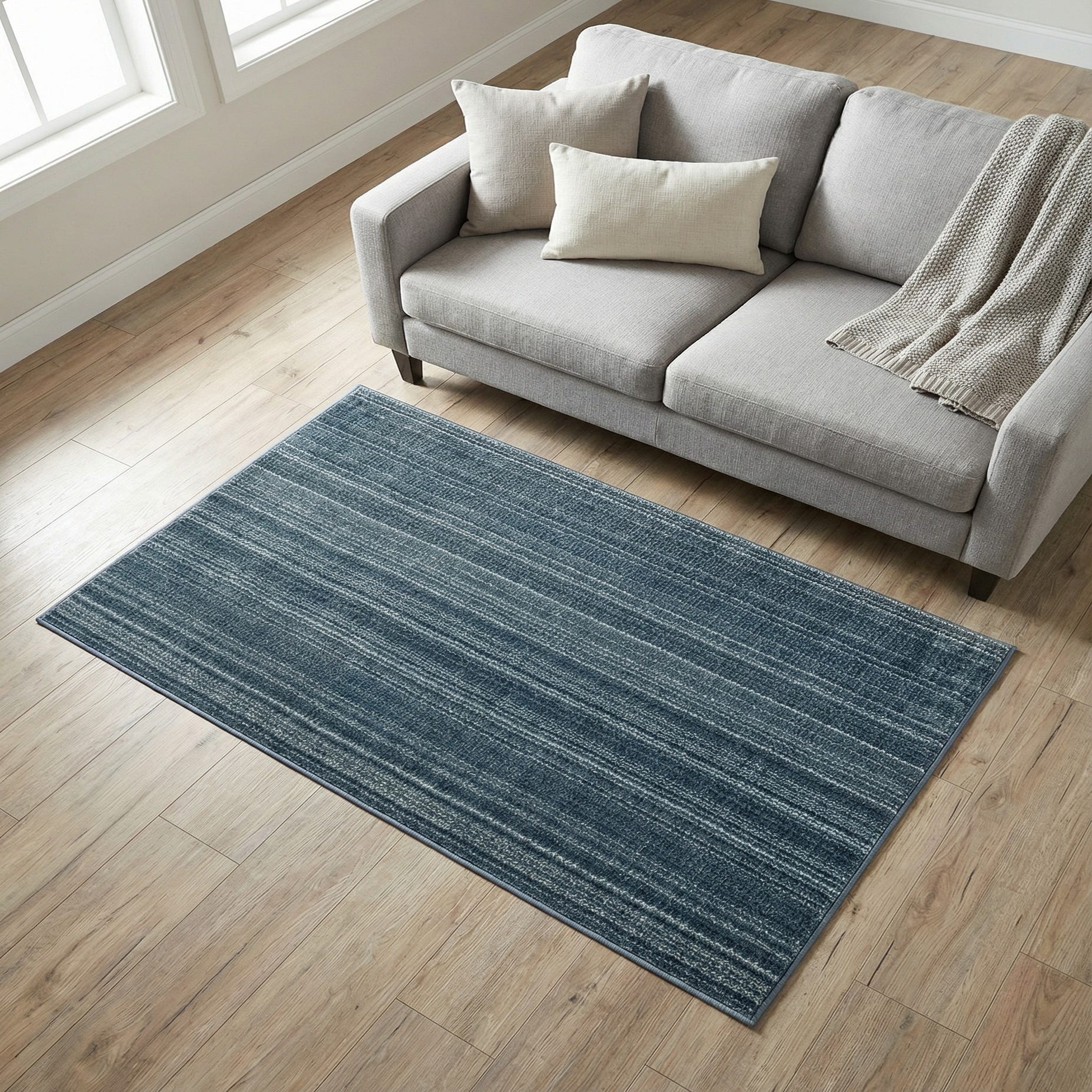 Primary color is Blue. Colors in this rug include: Blue, Gray, Navy Blue, Light Blue.