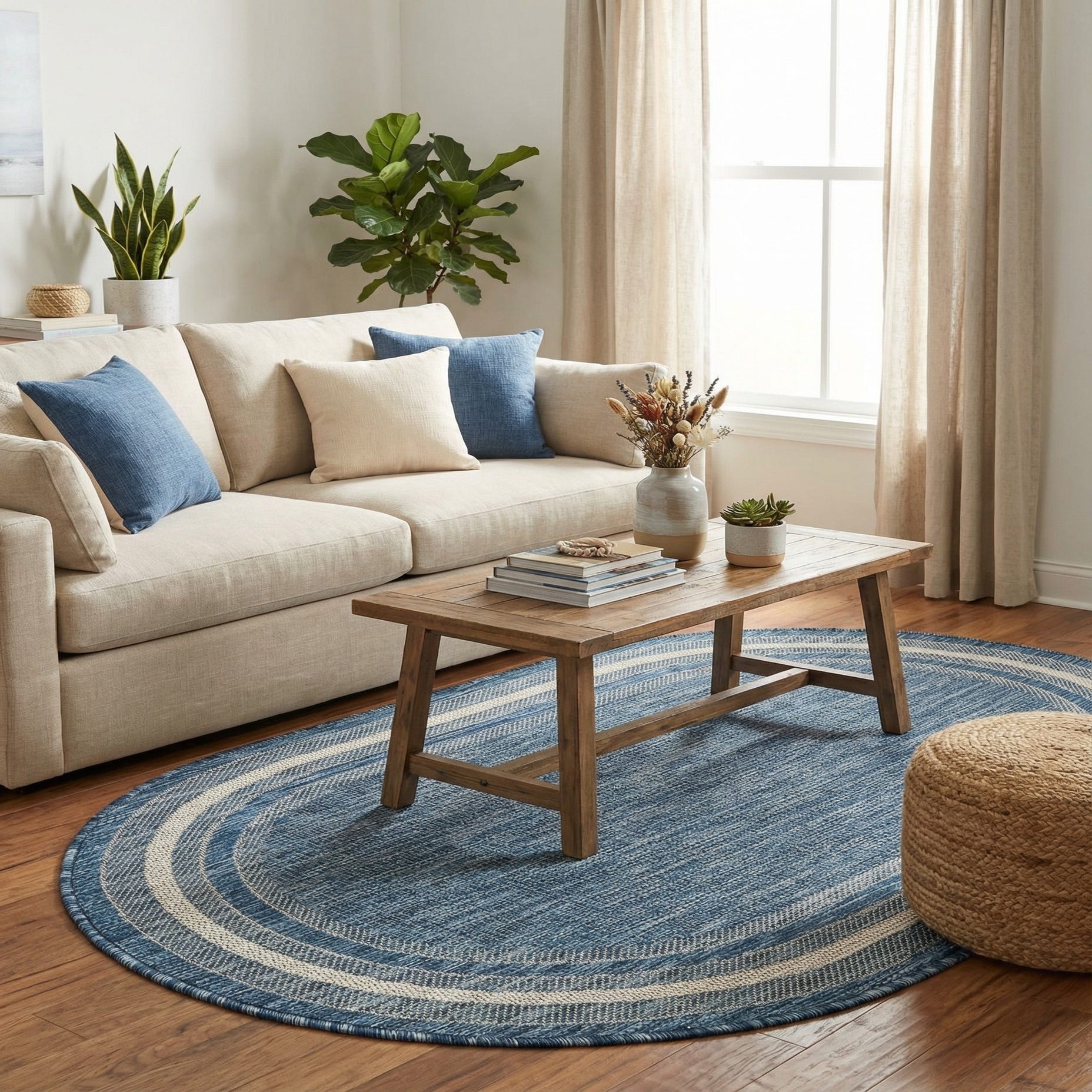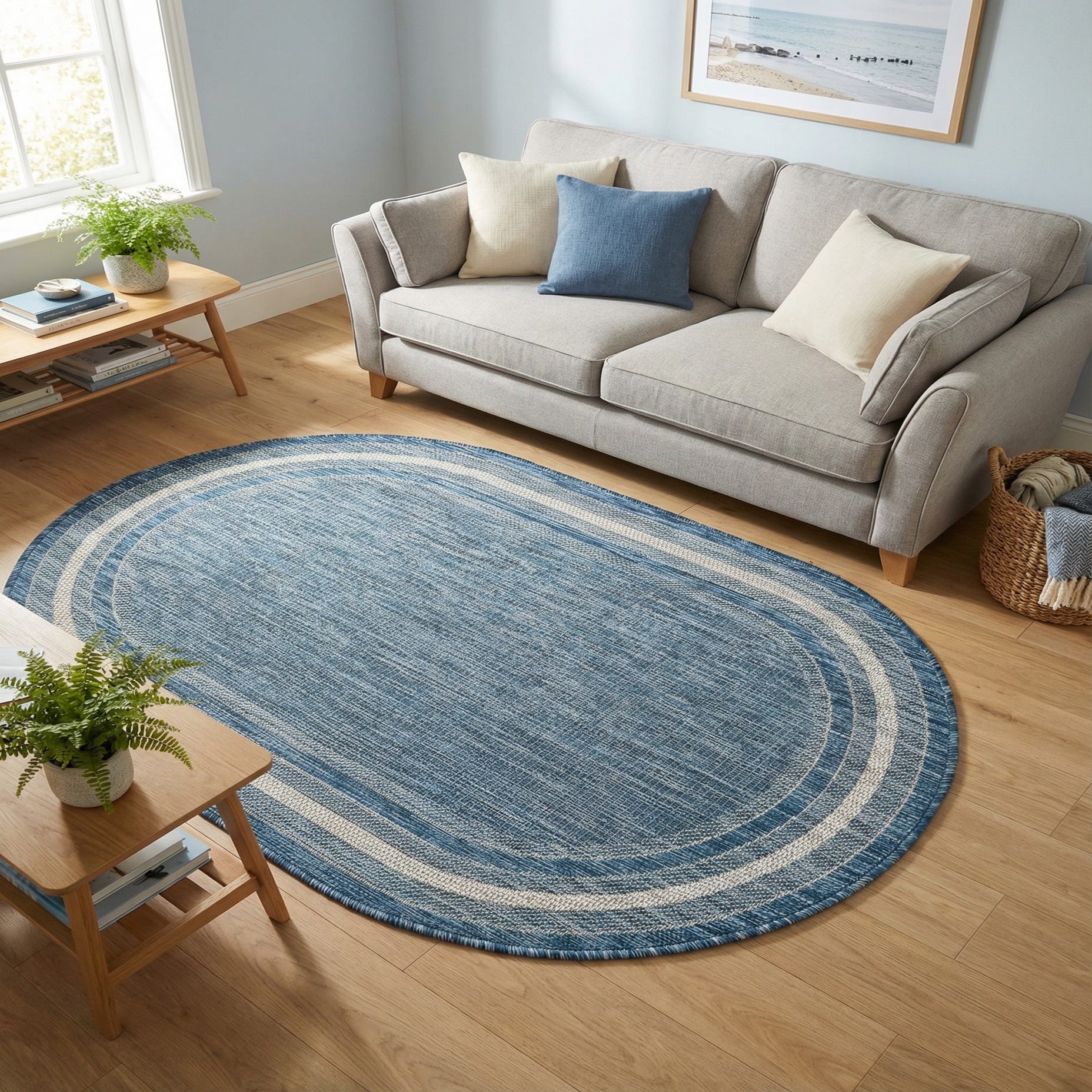 3' x 5' 3 Washable Border Indoor / Outdoor Oval Rug