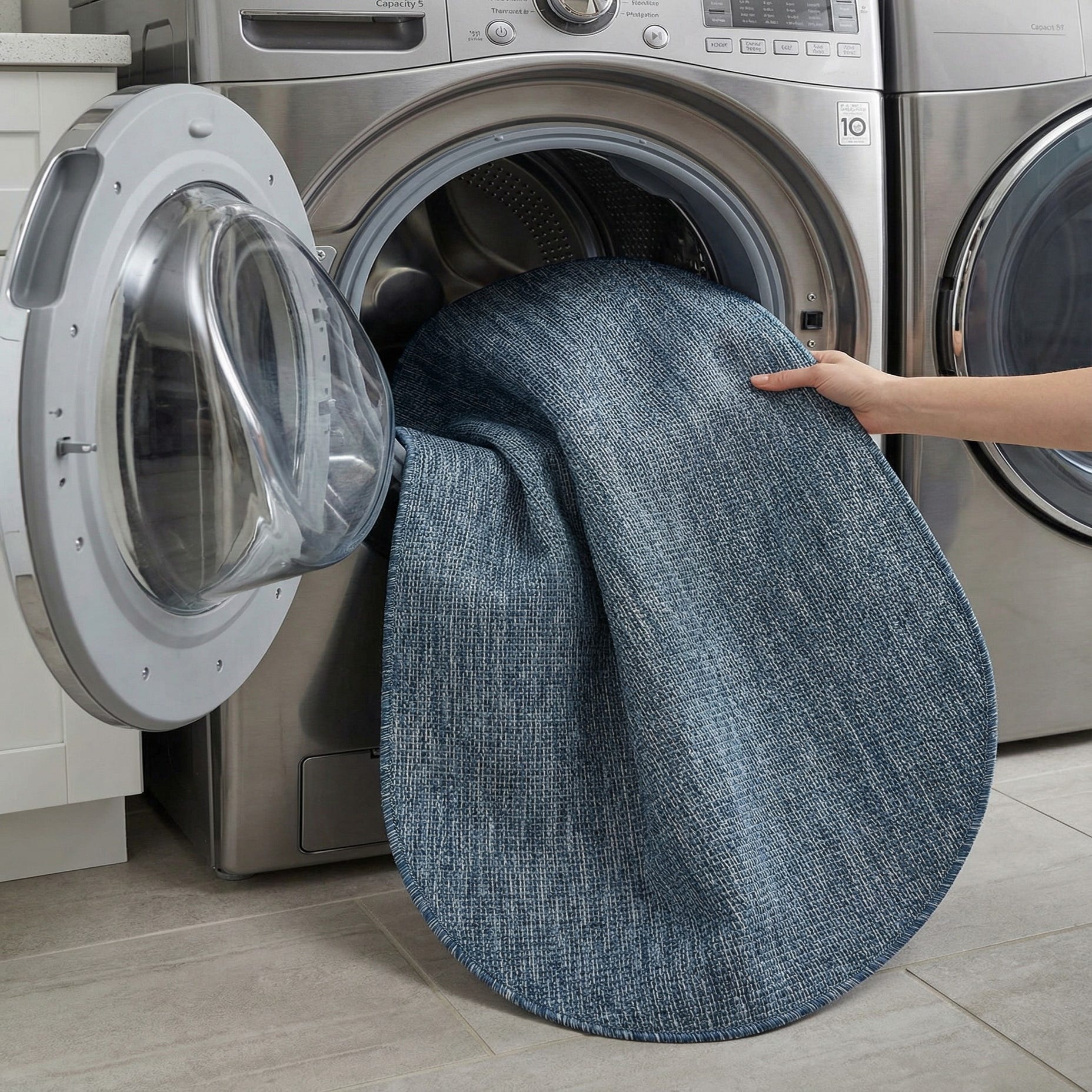 3' x 5' 3 Washable Solid Indoor / Outdoor Oval Rug