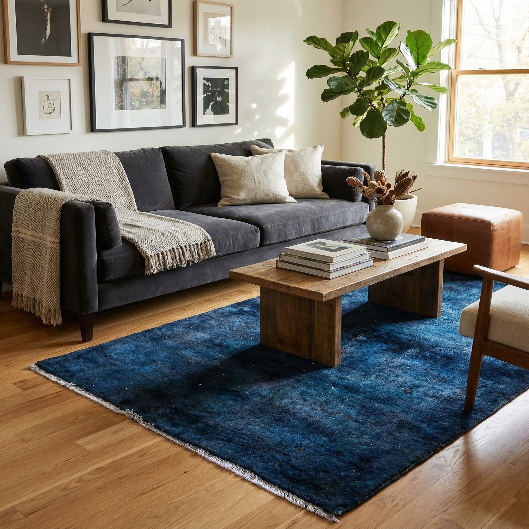 Primary color is Blue. Colors in this rug include: Blue, Navy Blue.