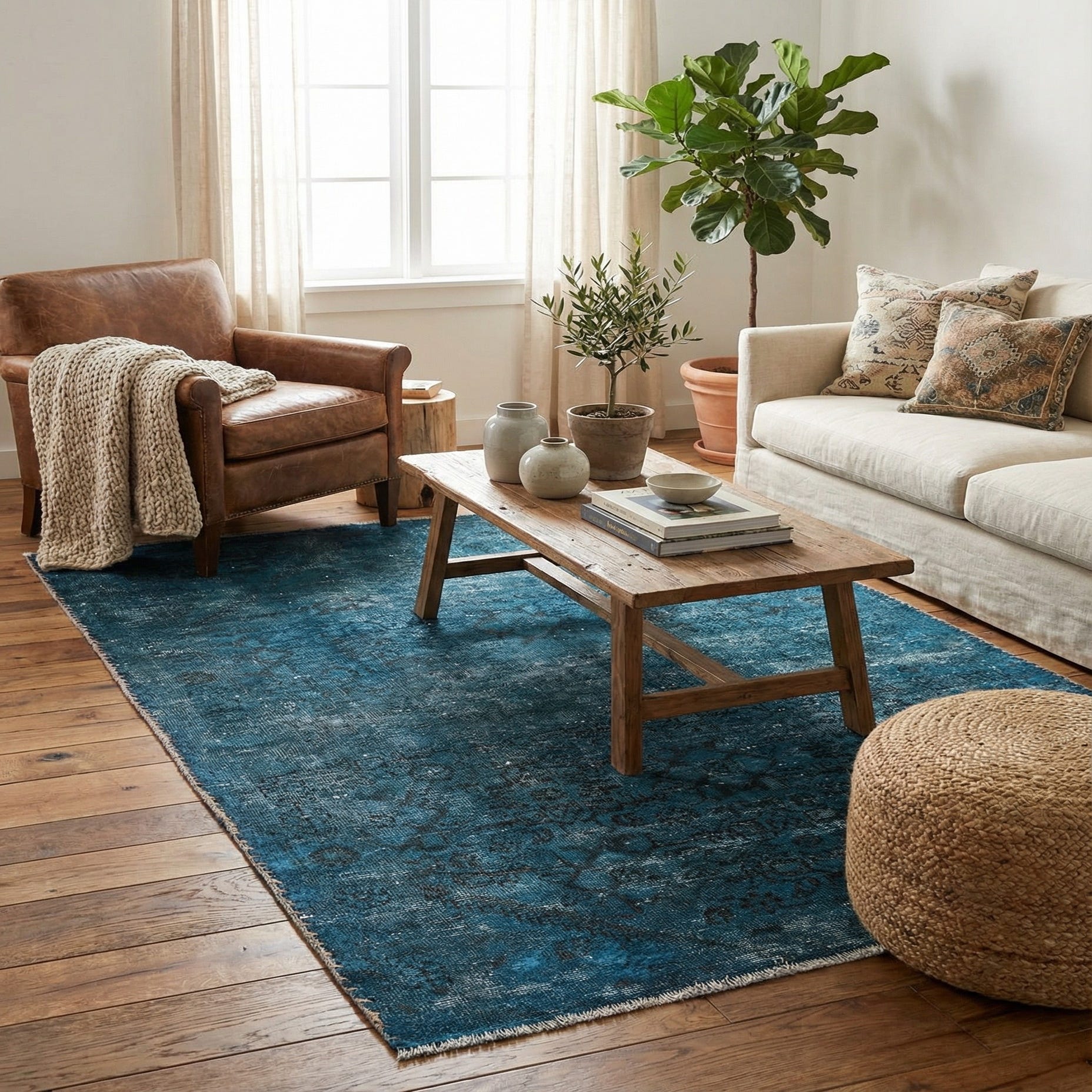 This Persian Ultra Vintage rug is an antique Persian Rug that has been washed, over-dyed, and then shaved down to a low pile. Look at the detail pictures to fully appreciate the uniqueness of this piece.
