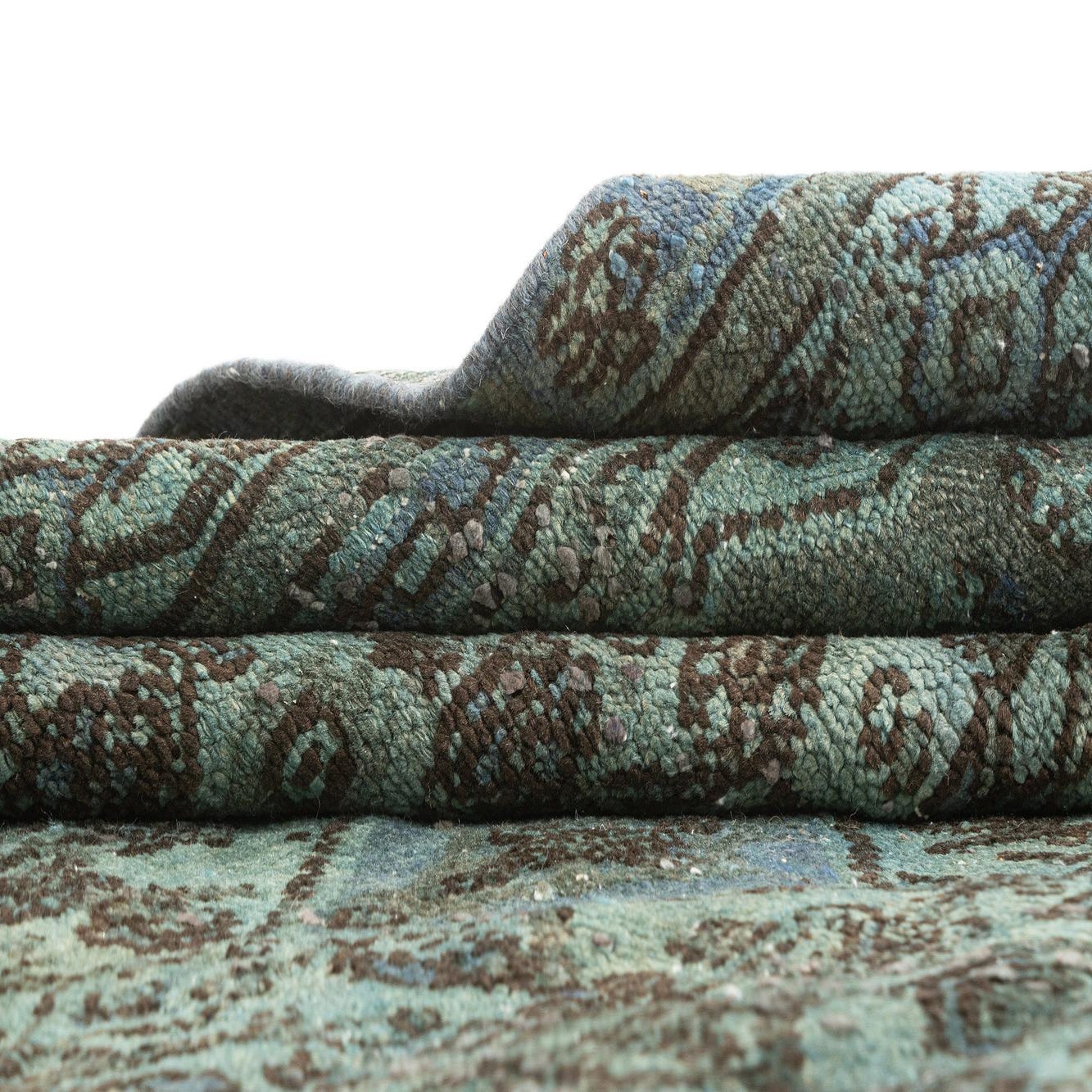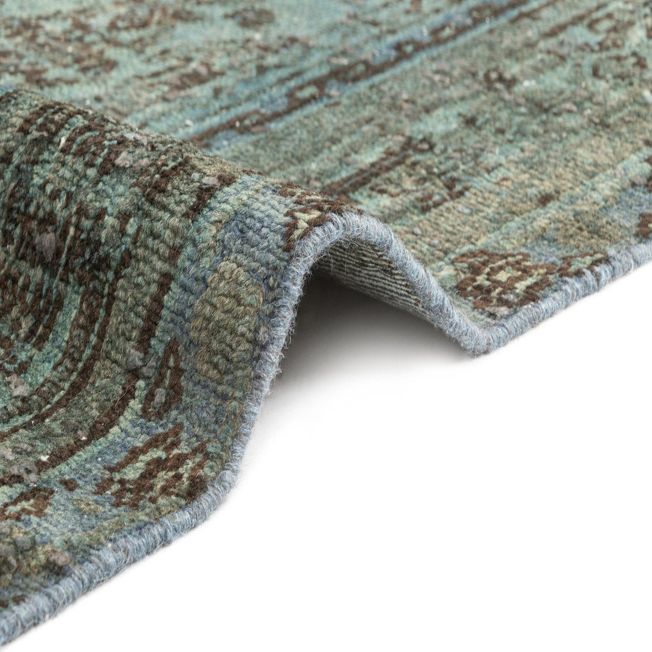 Primary color is Blue. Colors in this rug include: Blue, Brown, Green.
