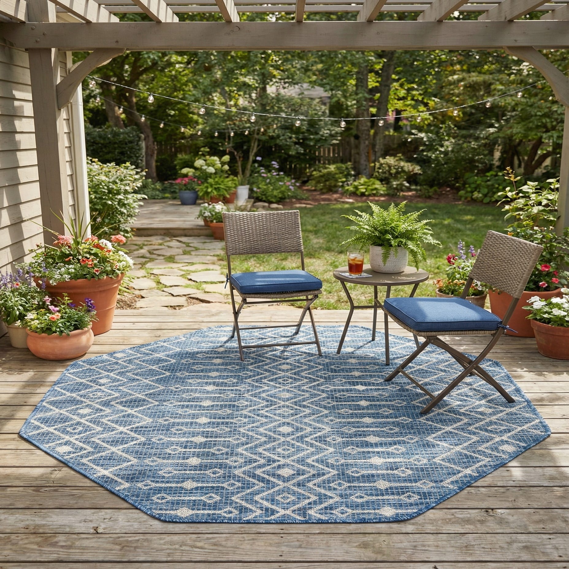 Detail image of 4' x 4'  Washable Trellis Indoor / Outdoor Octagon Rug