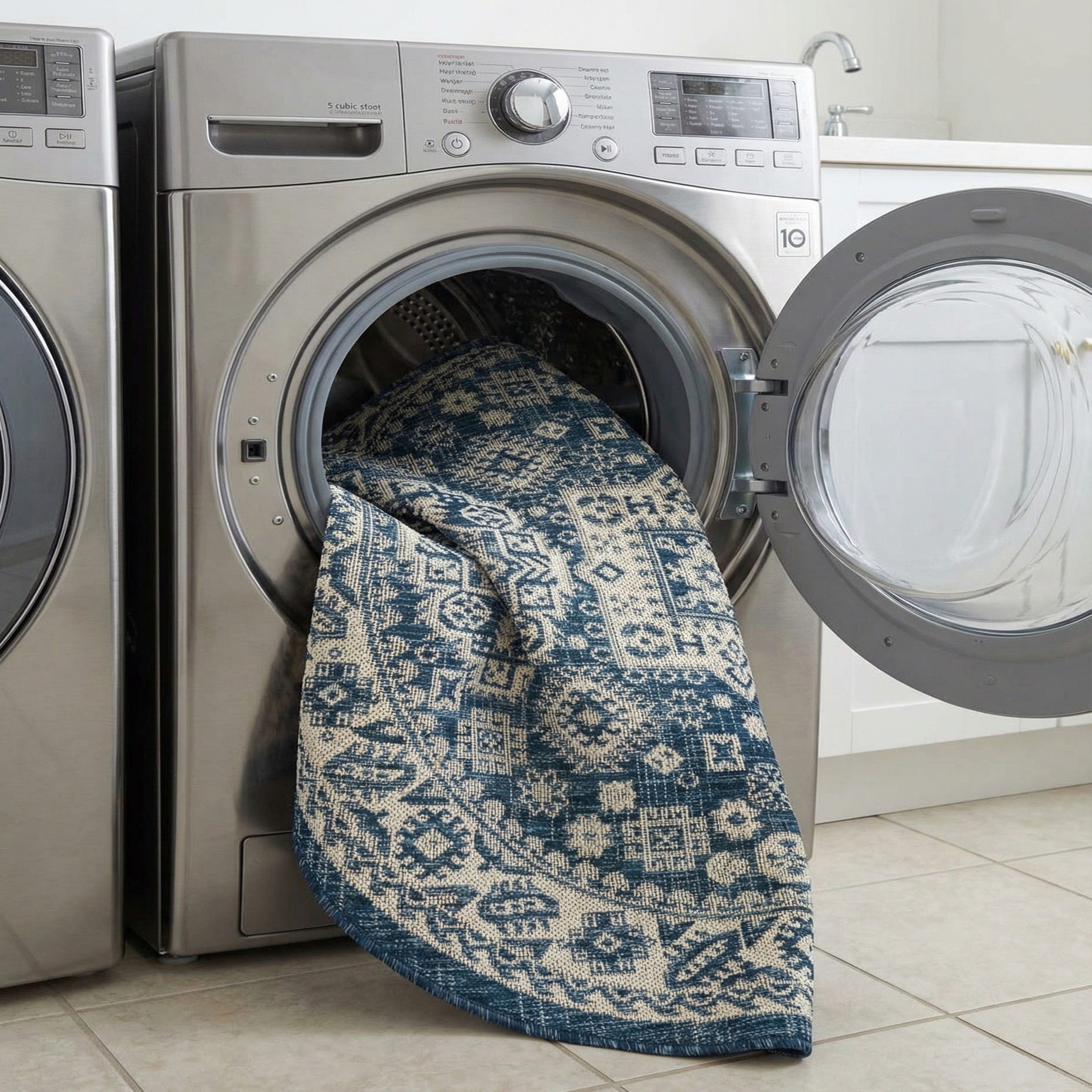 4' x 4' Washable Aztec Indoor / Outdoor Round Rug