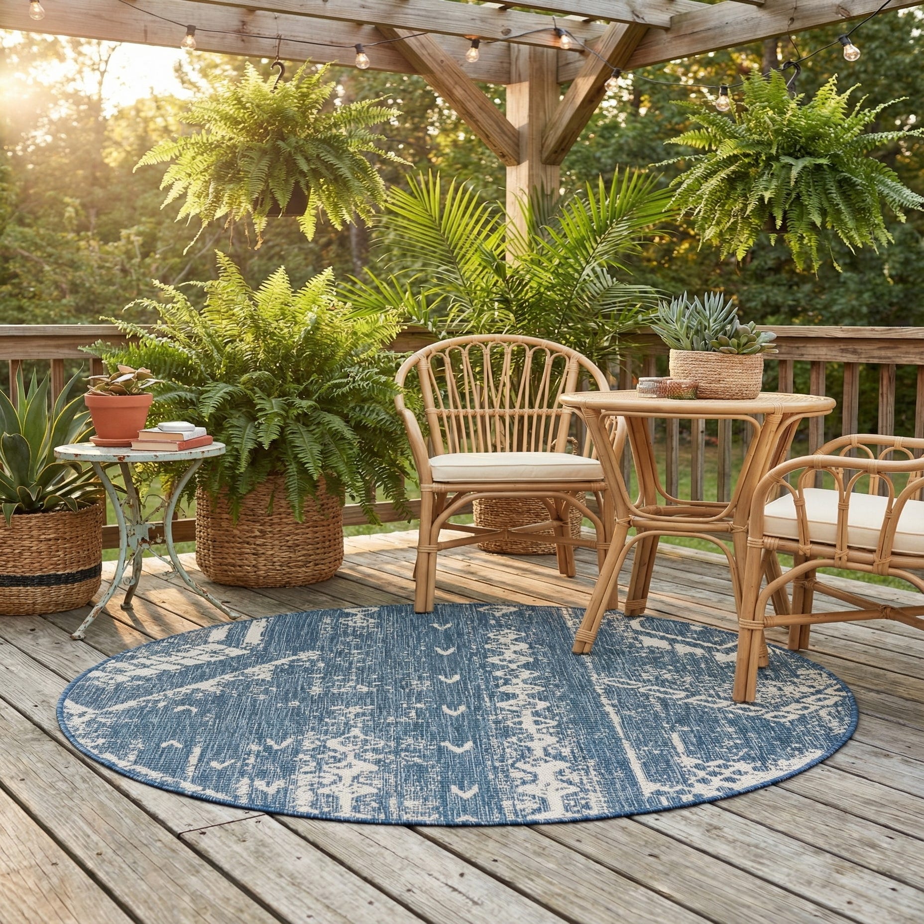 4' x 4' Washable Bohemian Indoor / Outdoor Round Rug