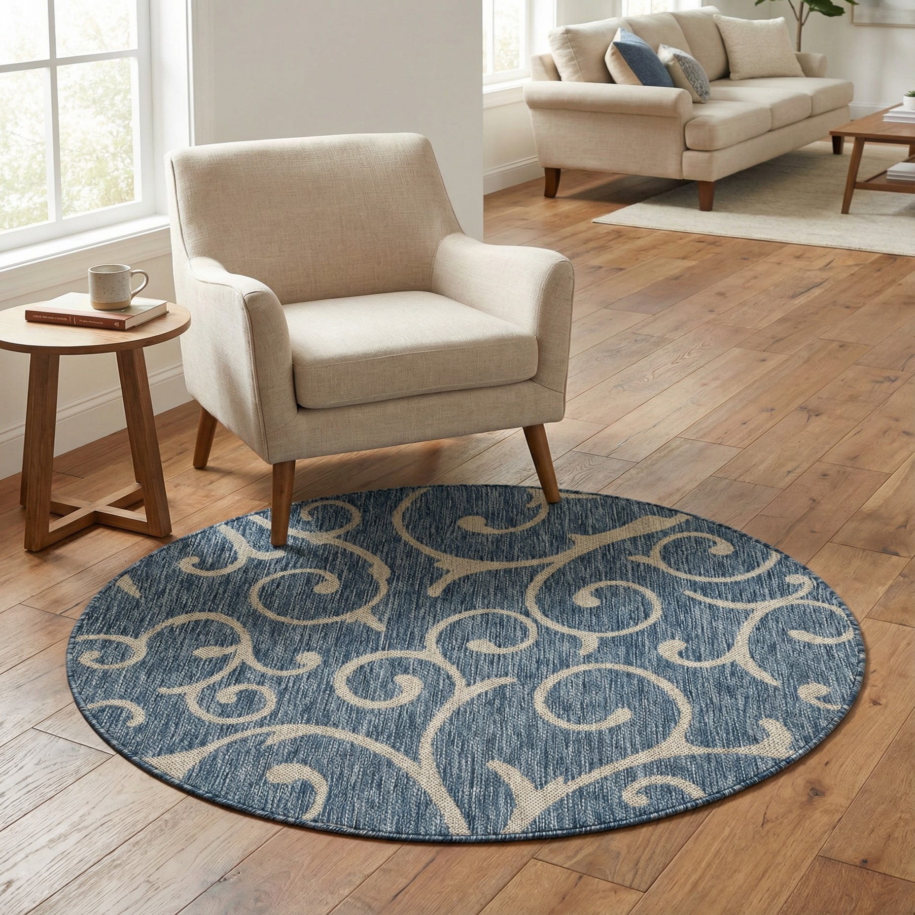 Primary image 4' x 4'  Washable Botanical Indoor / Outdoor Round Rug