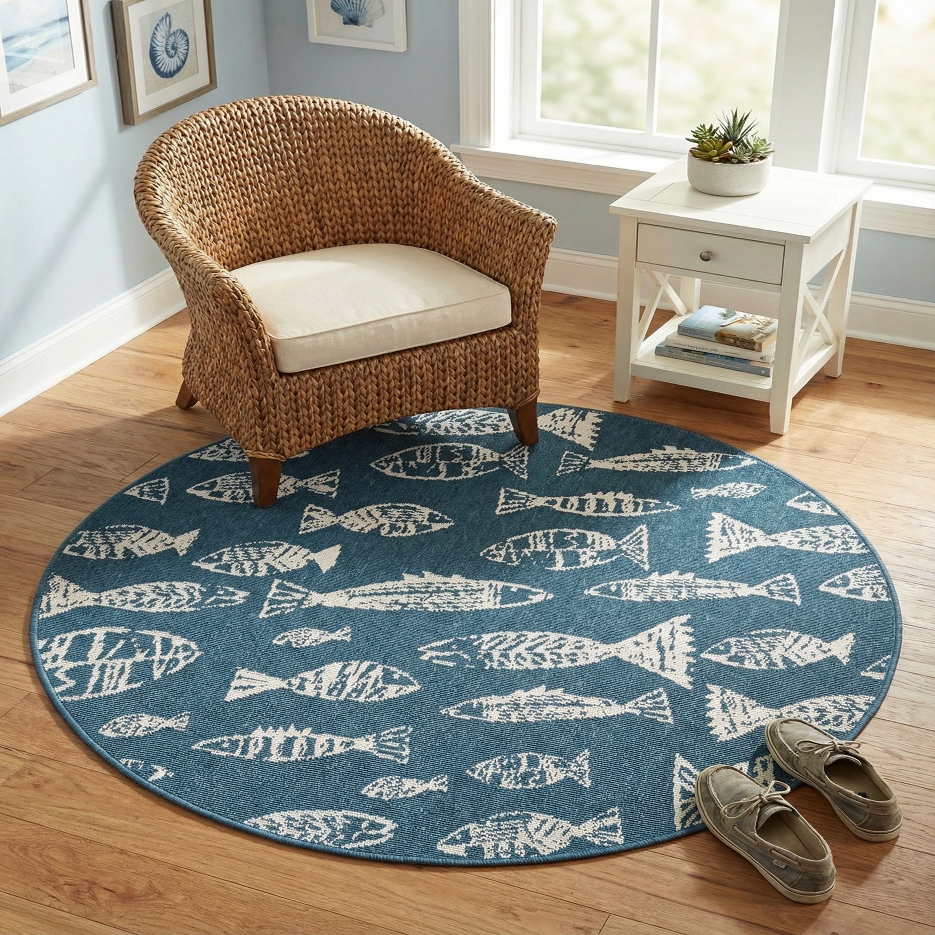 4' x 4' Washable Coastal Indoor / Outdoor Round Rug