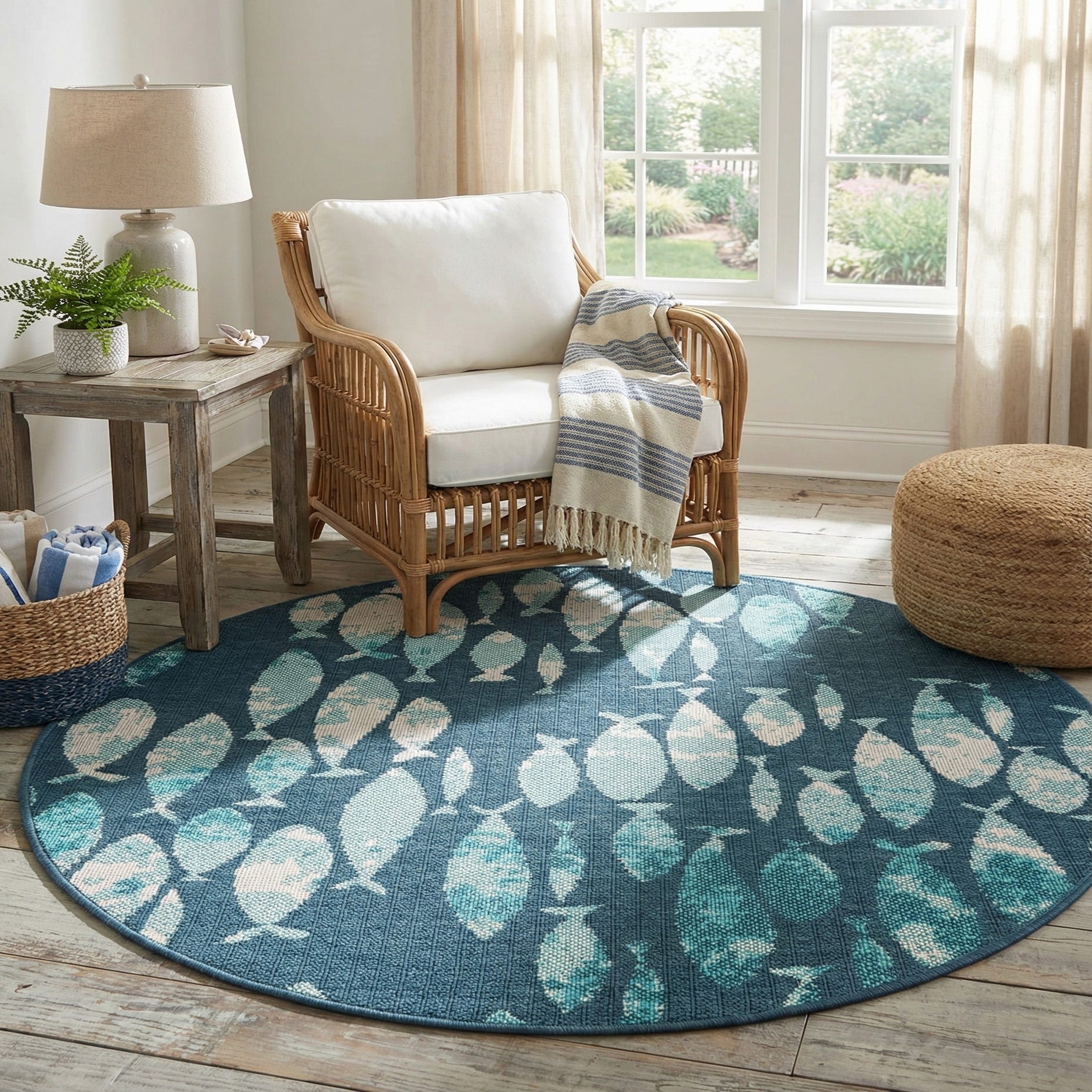 4' x 4' Washable Coastal Indoor / Outdoor Round Rug