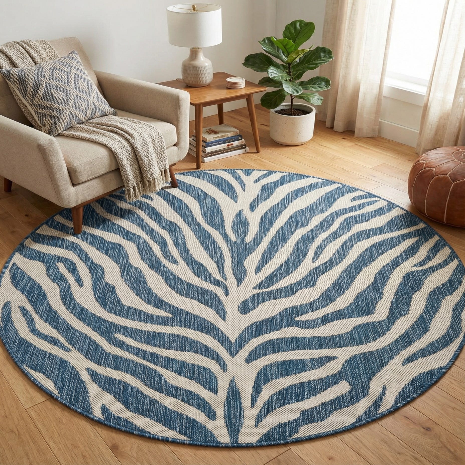 4' x 4' Washable Safari Indoor / Outdoor Round Rug