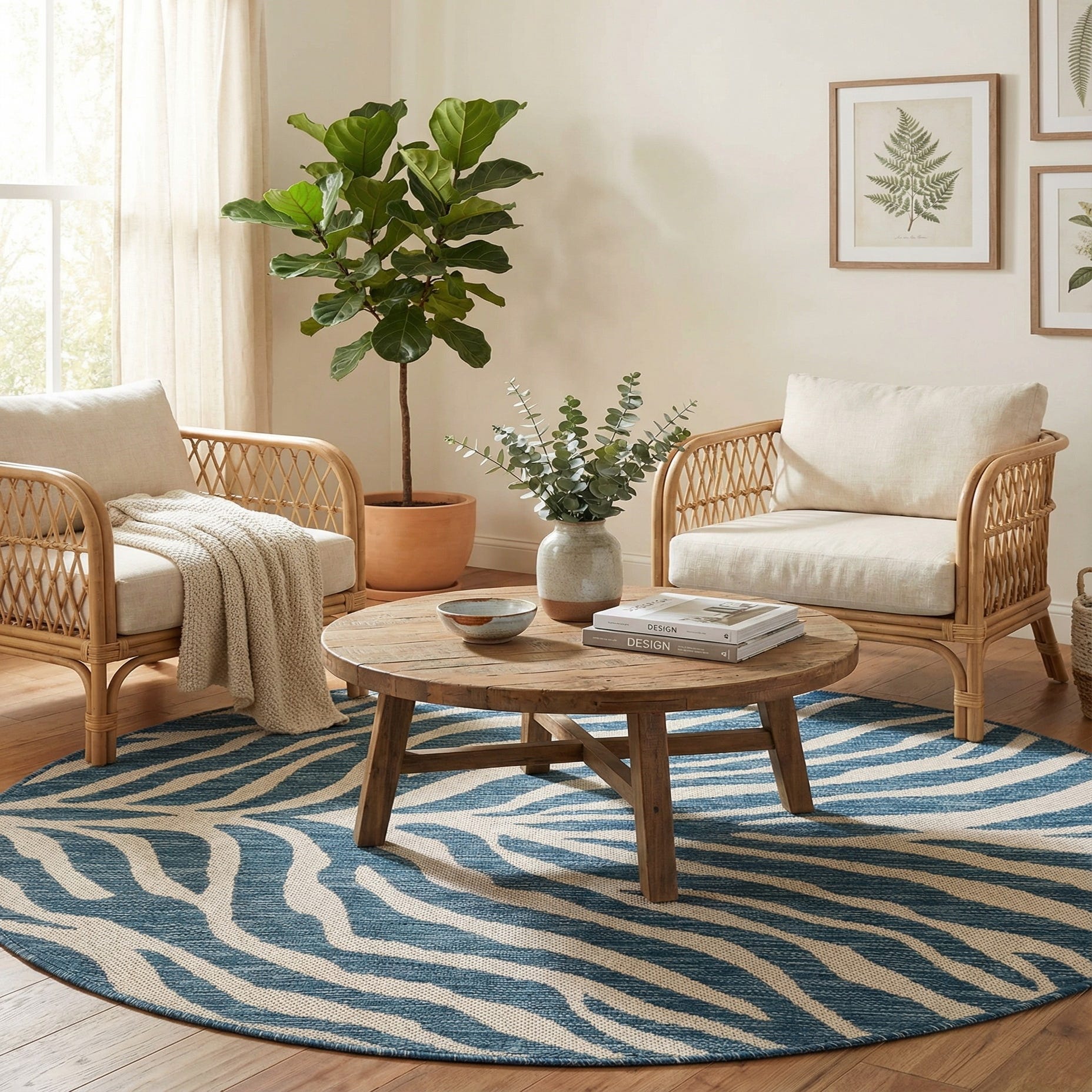 4' x 4' Washable Safari Indoor / Outdoor Round Rug