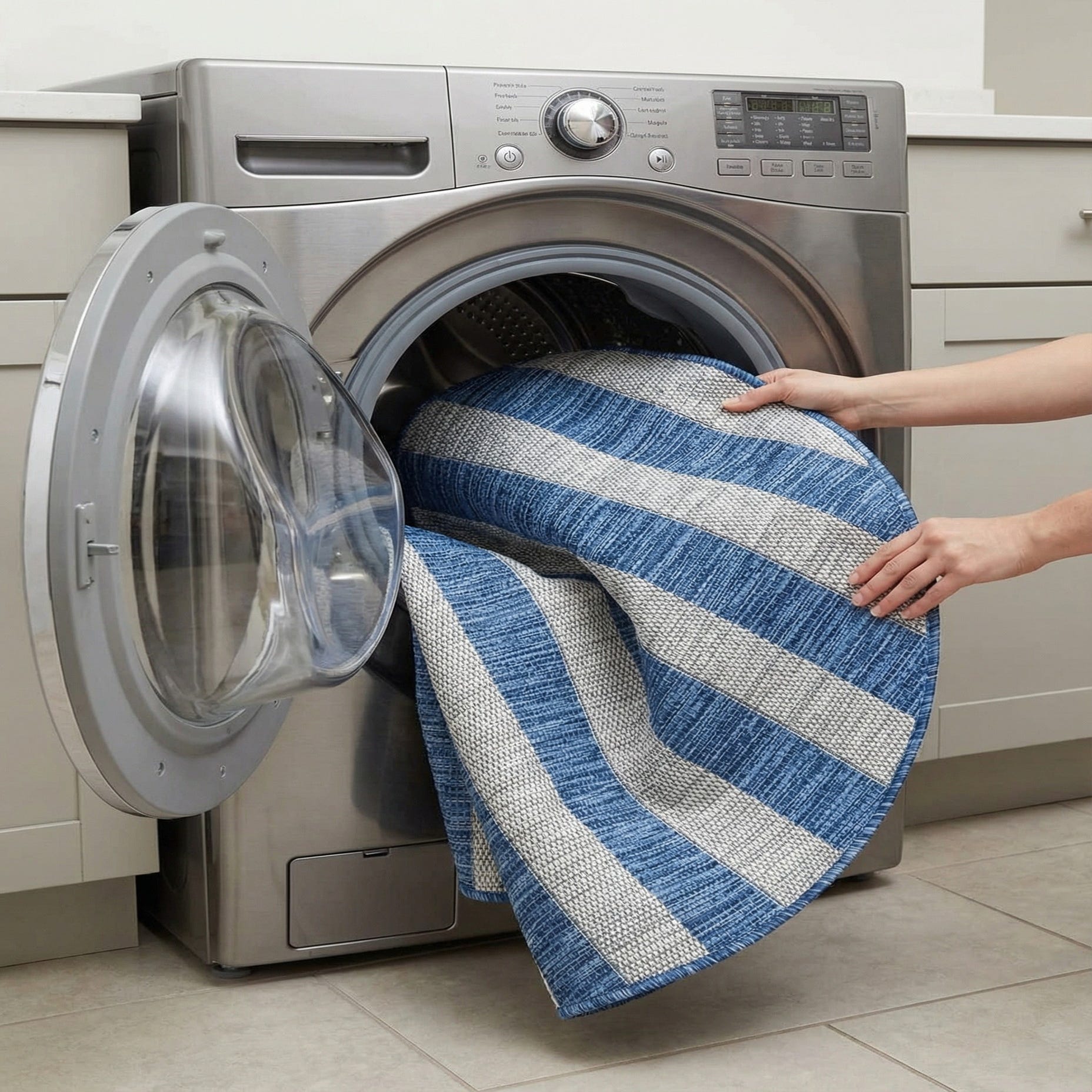 4' x 4' Washable Striped Indoor / Outdoor Round Rug