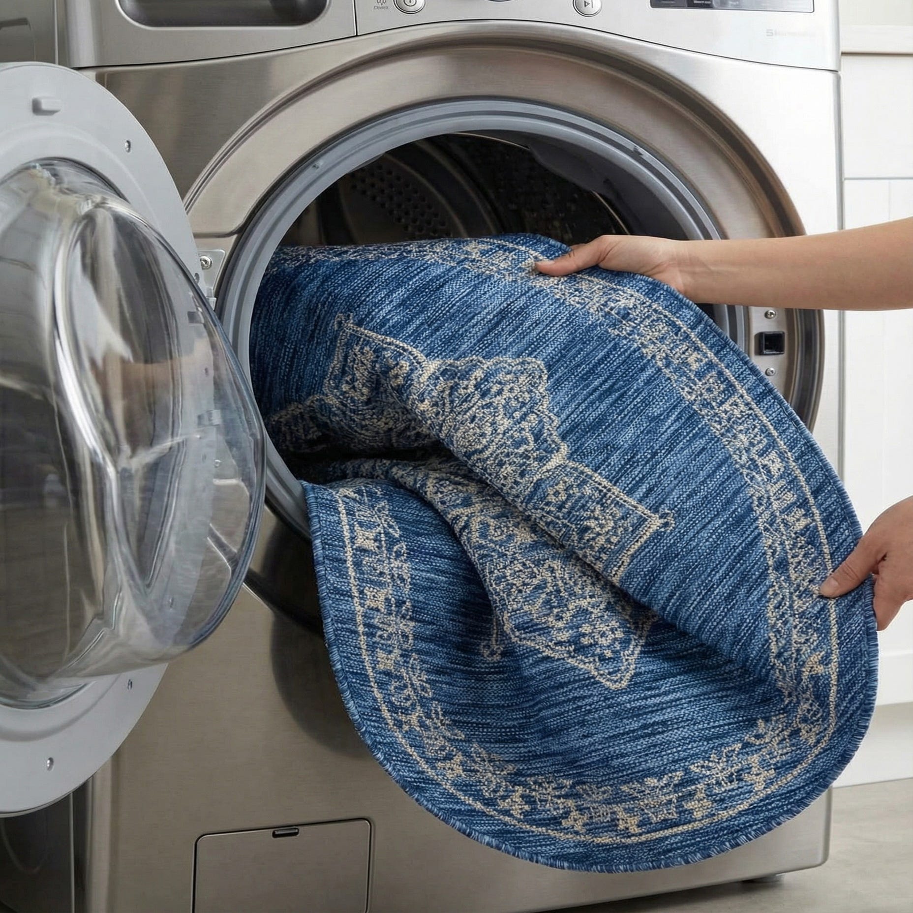 4' x 4' Washable Traditional Indoor / Outdoor Round Rug