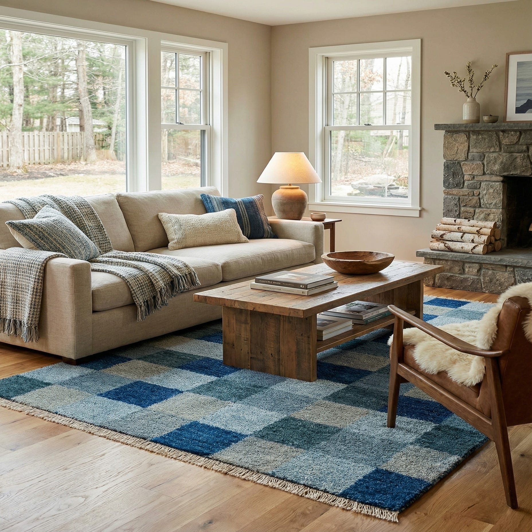Primary color is Blue. Colors in this rug include: Blue, Light Blue, Navy Blue.