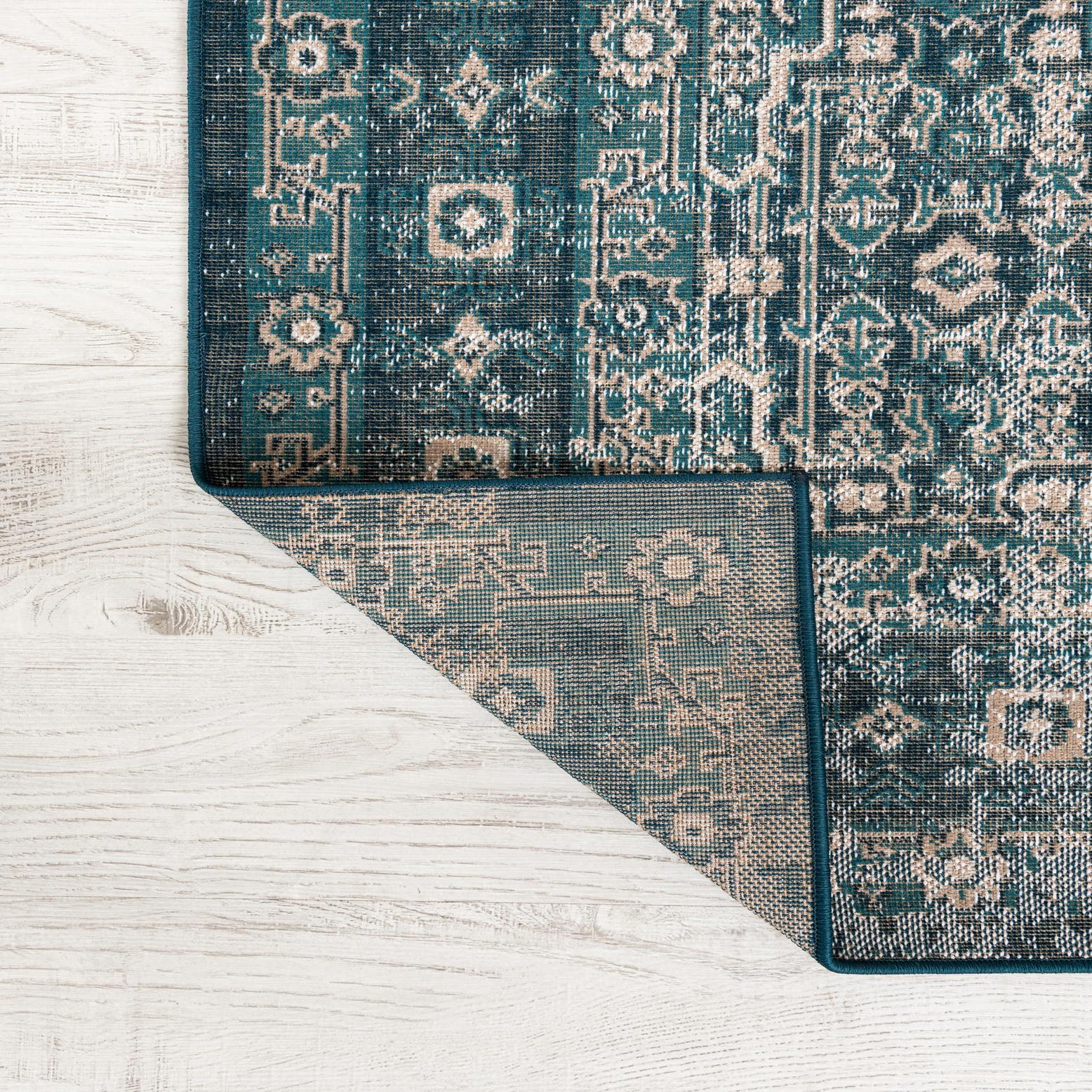 Primary color is Blue. Colors in this rug include: Blue, Gray, Ivory, Light Blue.