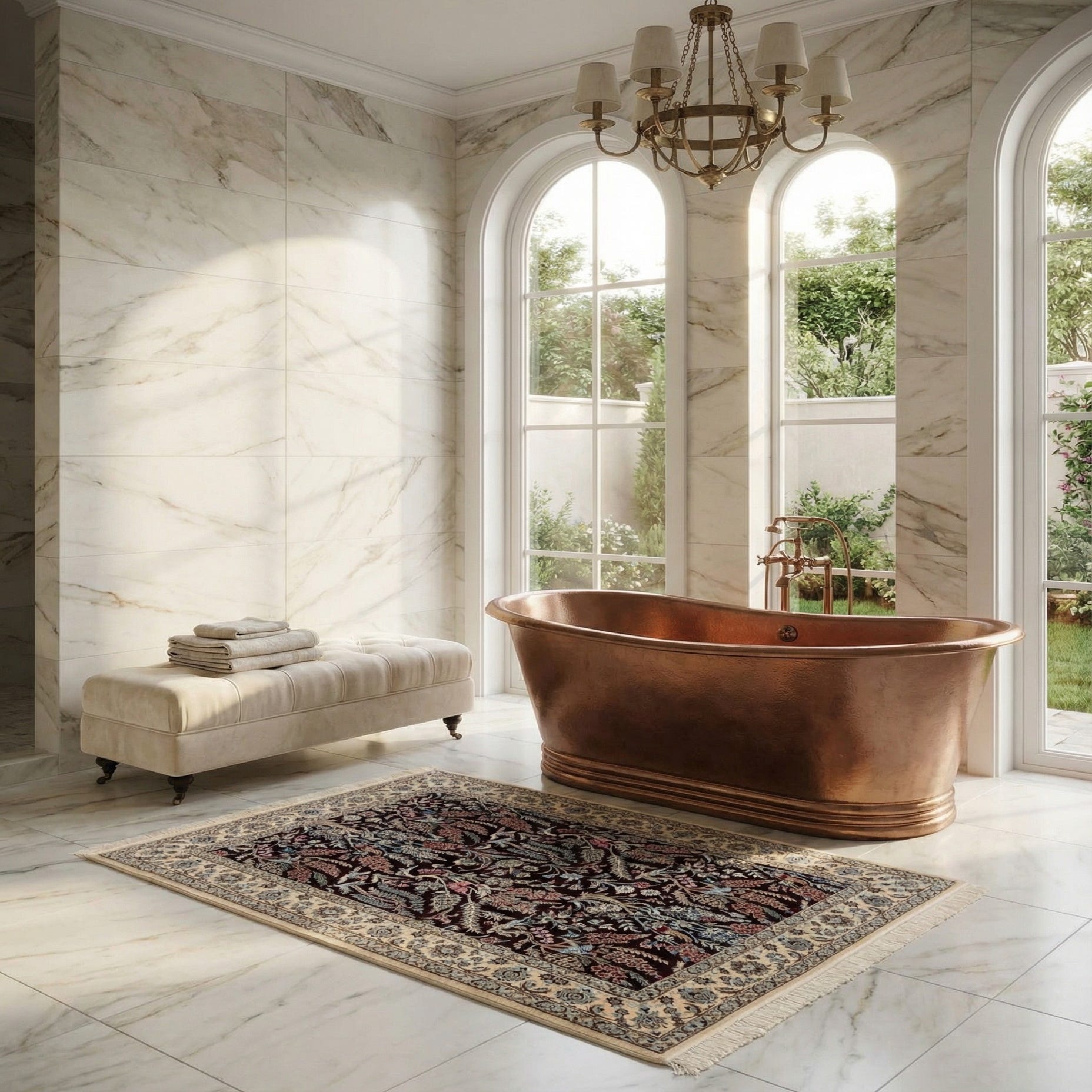Primary color is Blue. Colors in this rug include: Blue, Beige, Brown.