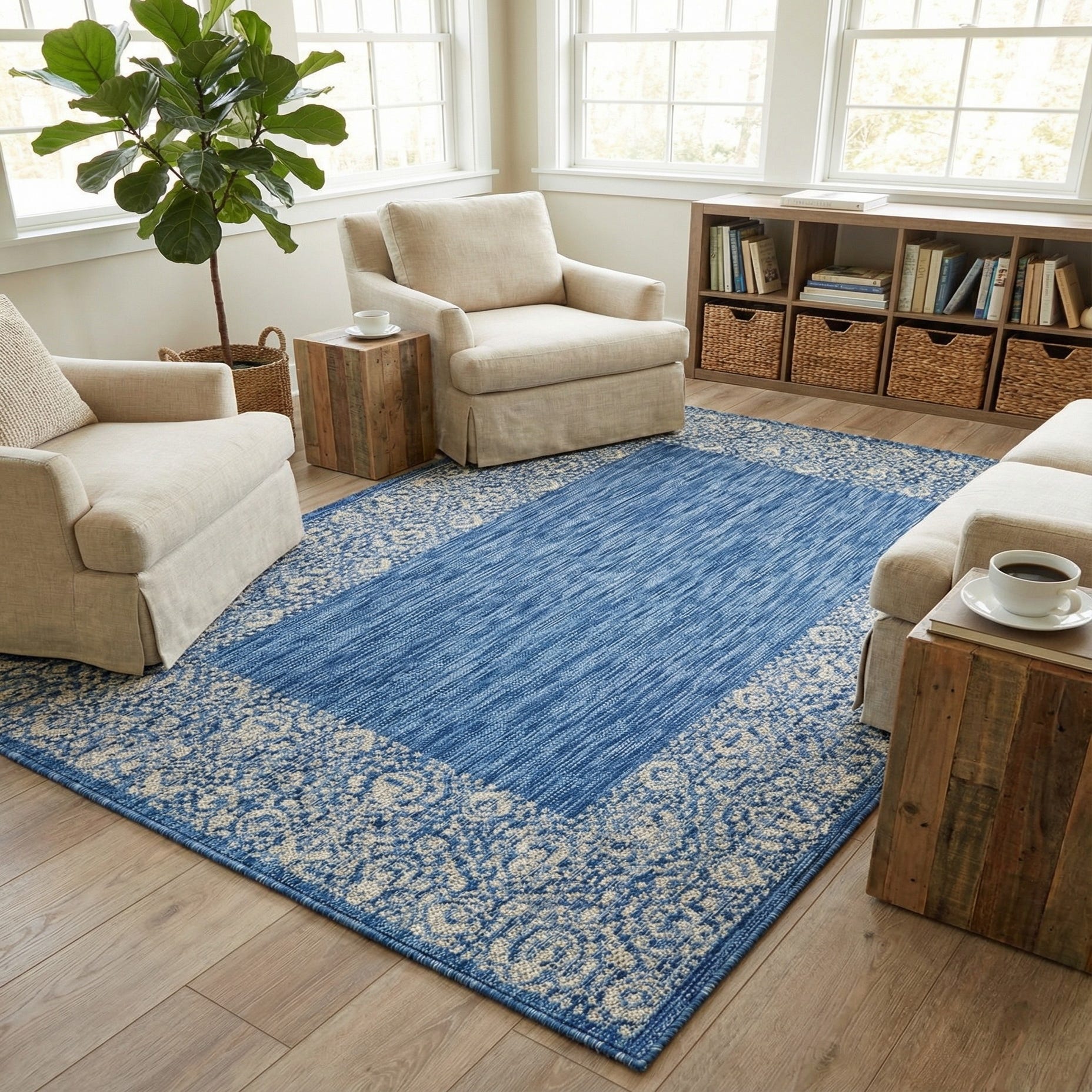4' x 6' Washable Border Indoor / Outdoor Rug