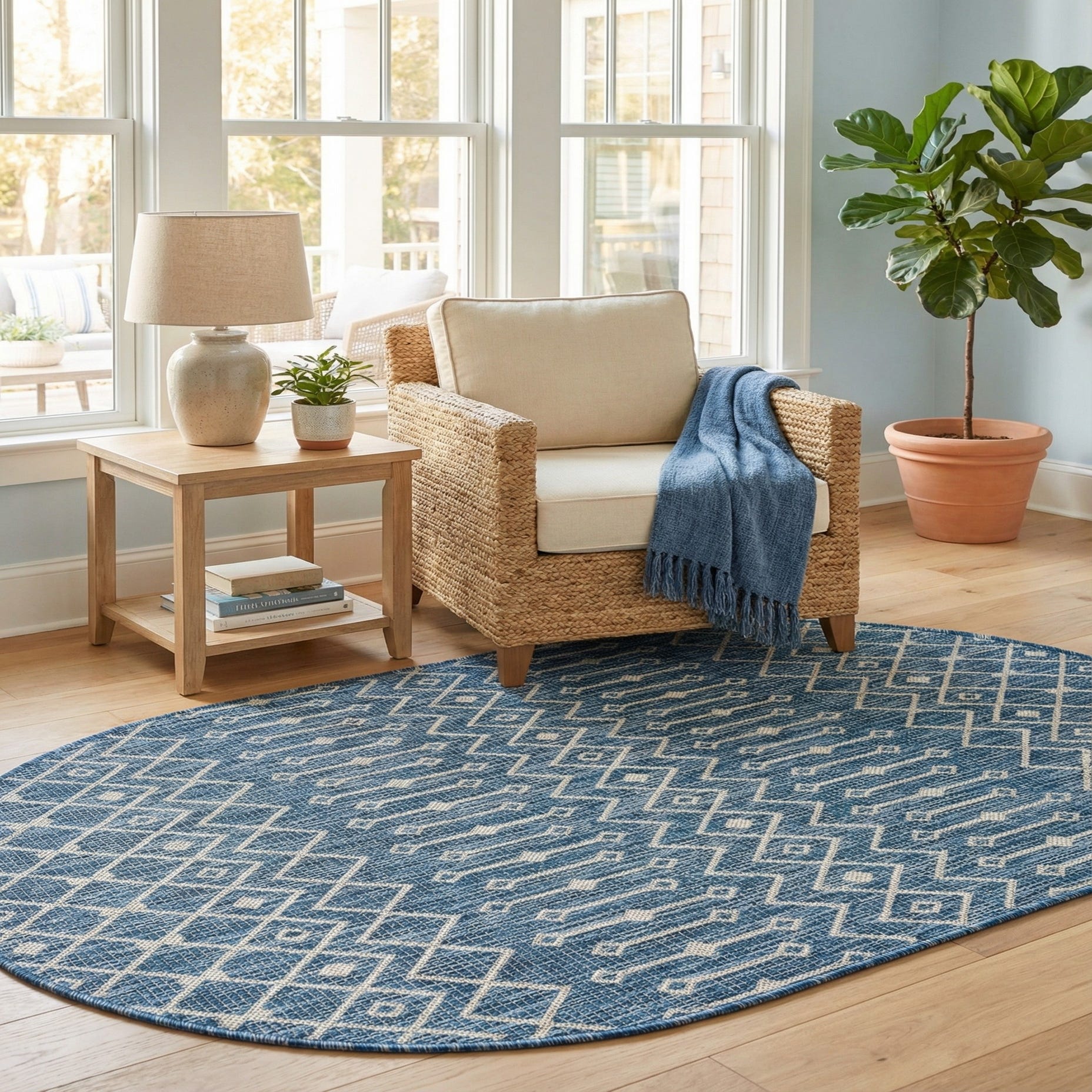 4' x 6' Washable Trellis Indoor / Outdoor Oval Rug