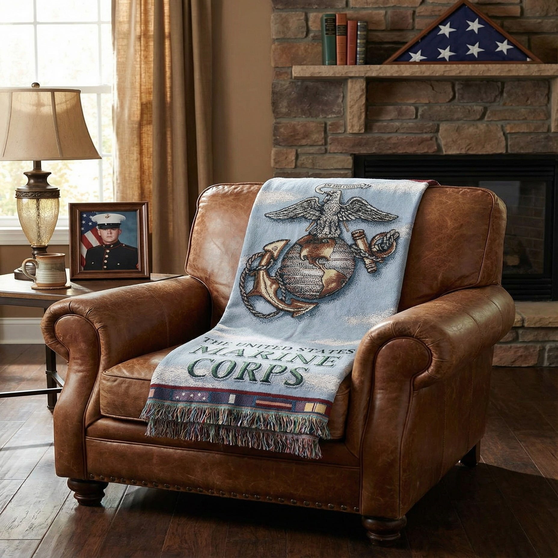 4' 6 x 6' Land Sea Air Marine Corps Throw Blanket