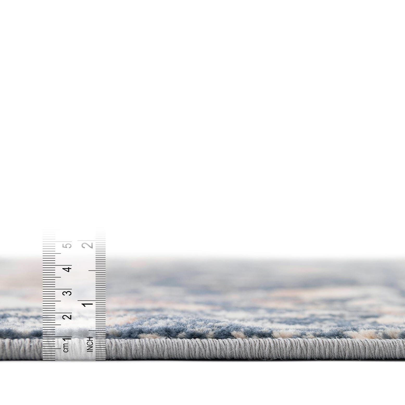 Primary color is Blue. Colors in this rug include: Blue, Beige, Ivory, Light Brown.