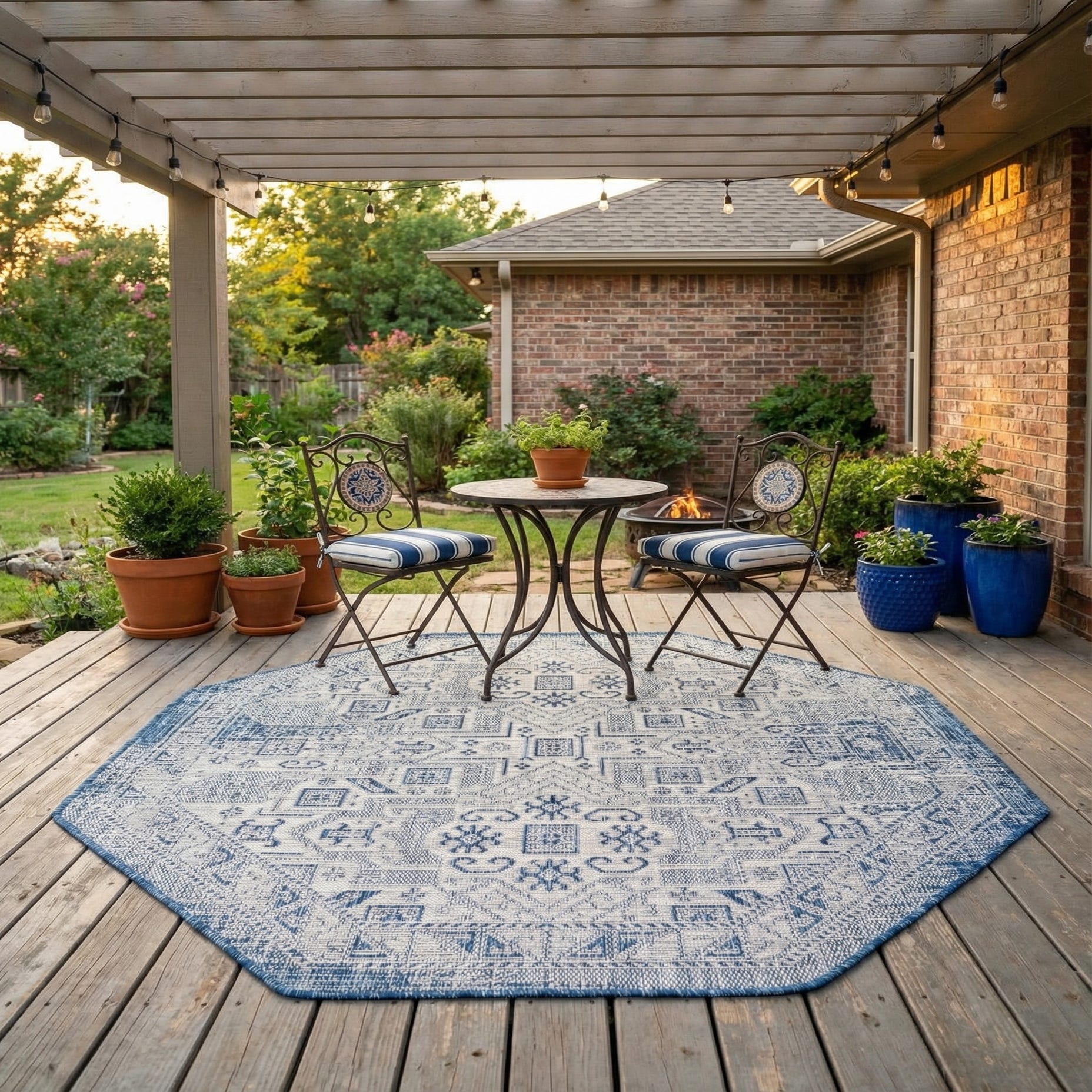 5' 3 x 5' 3 Washable Aztec Indoor / Outdoor Octagon Rug