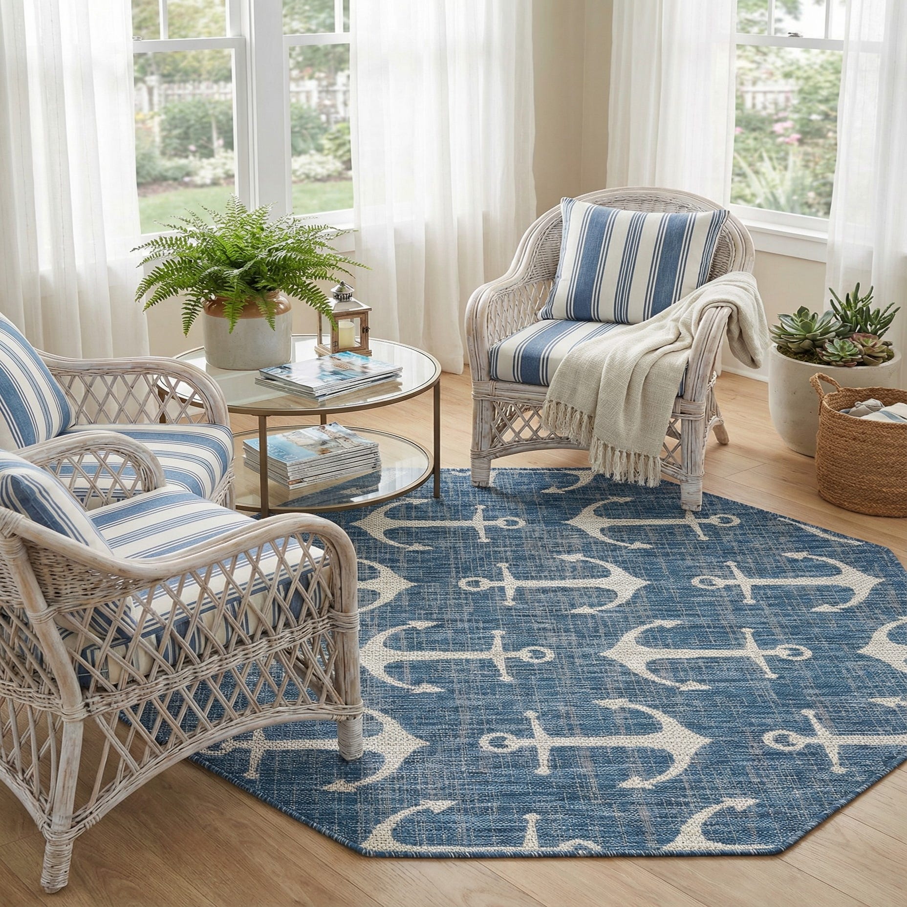 5' 3 x 5' 3 Washable Coastal Indoor / Outdoor Octagon Rug