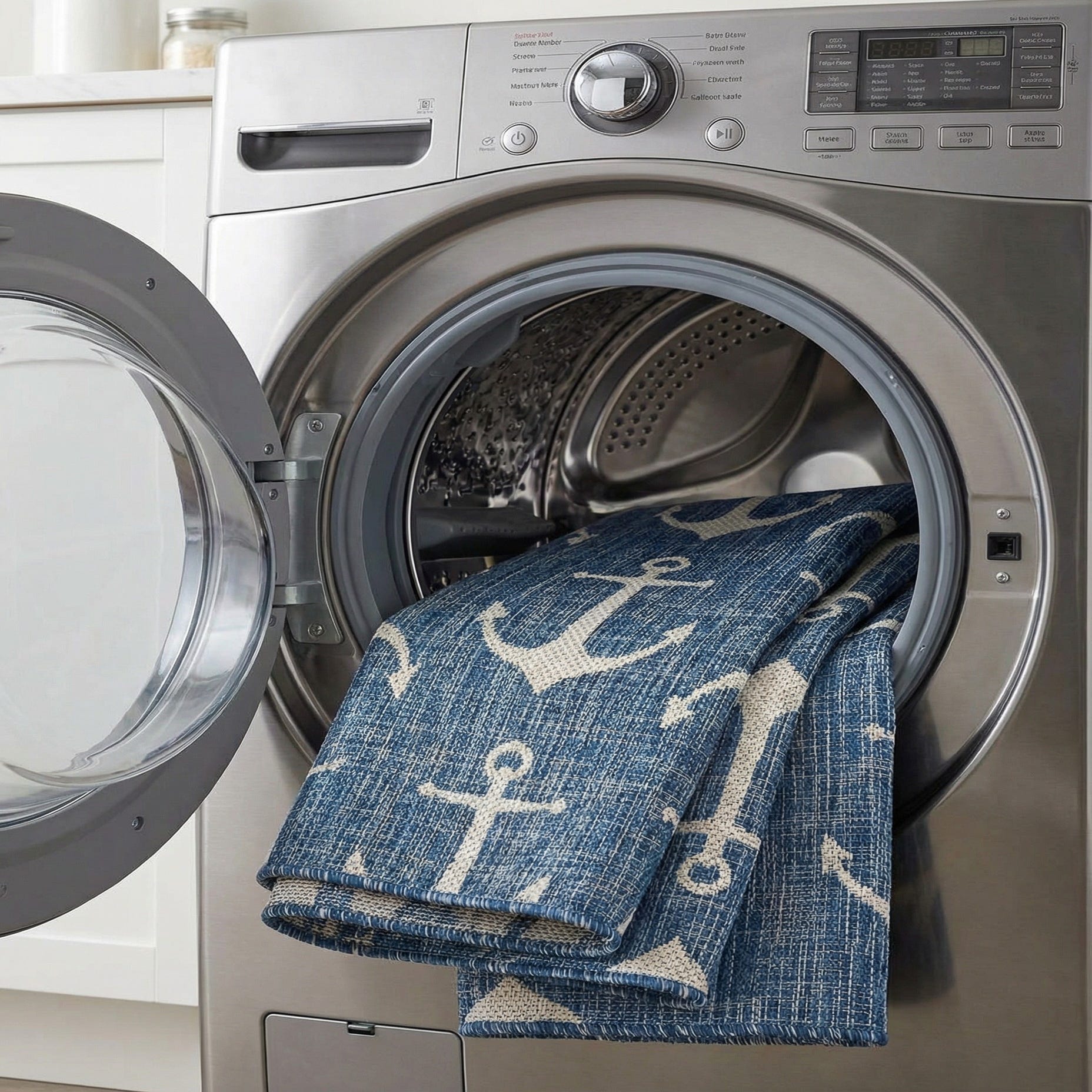 Detail image of 5' 3 x 5' 3  Washable Coastal Indoor / Outdoor Octagon Rug