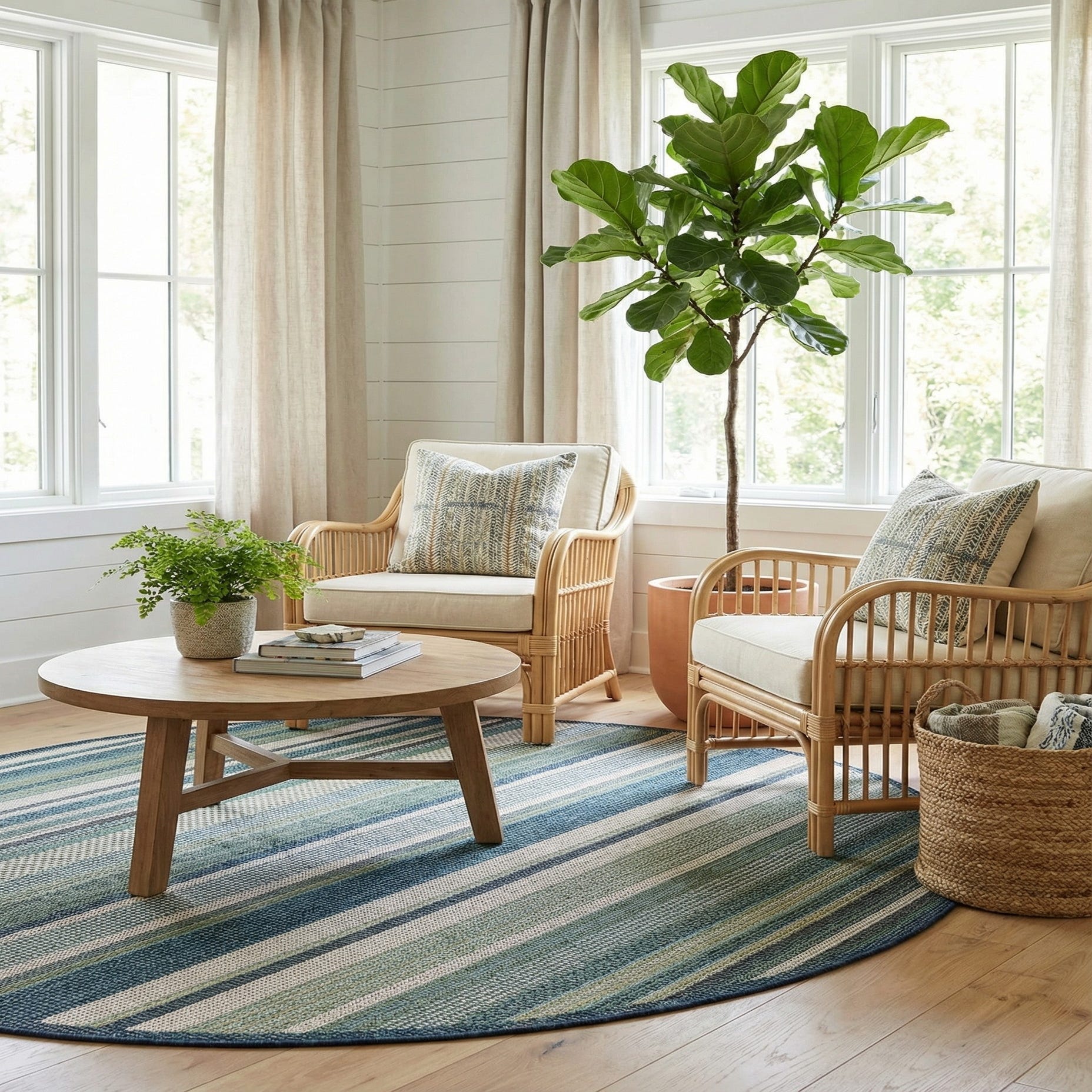 5' 3 x 5' 3 Washable Baja Indoor / Outdoor Round Rug