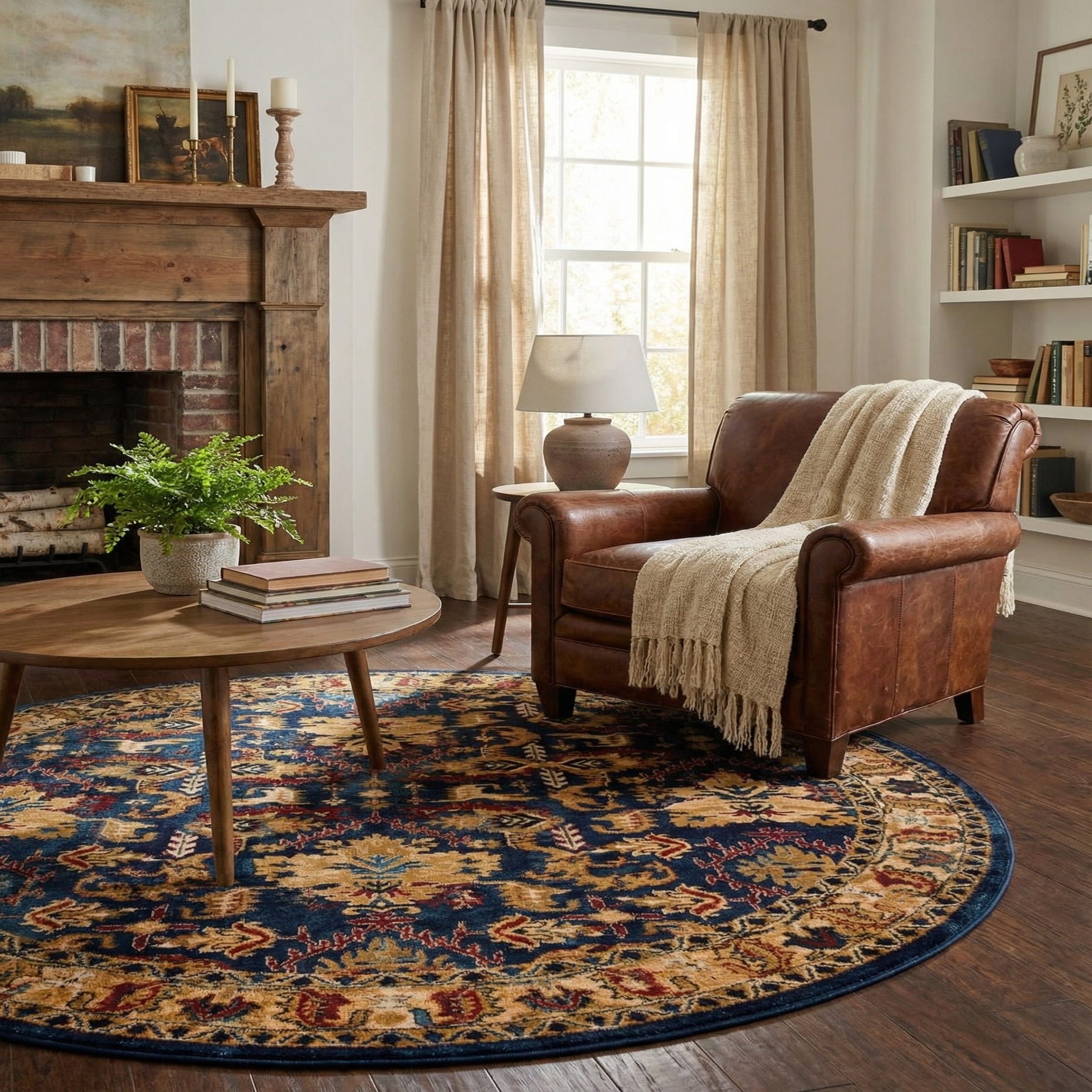 Primary color is Blue. Colors in this rug include: Blue, Beige, Black, Ivory, Red.