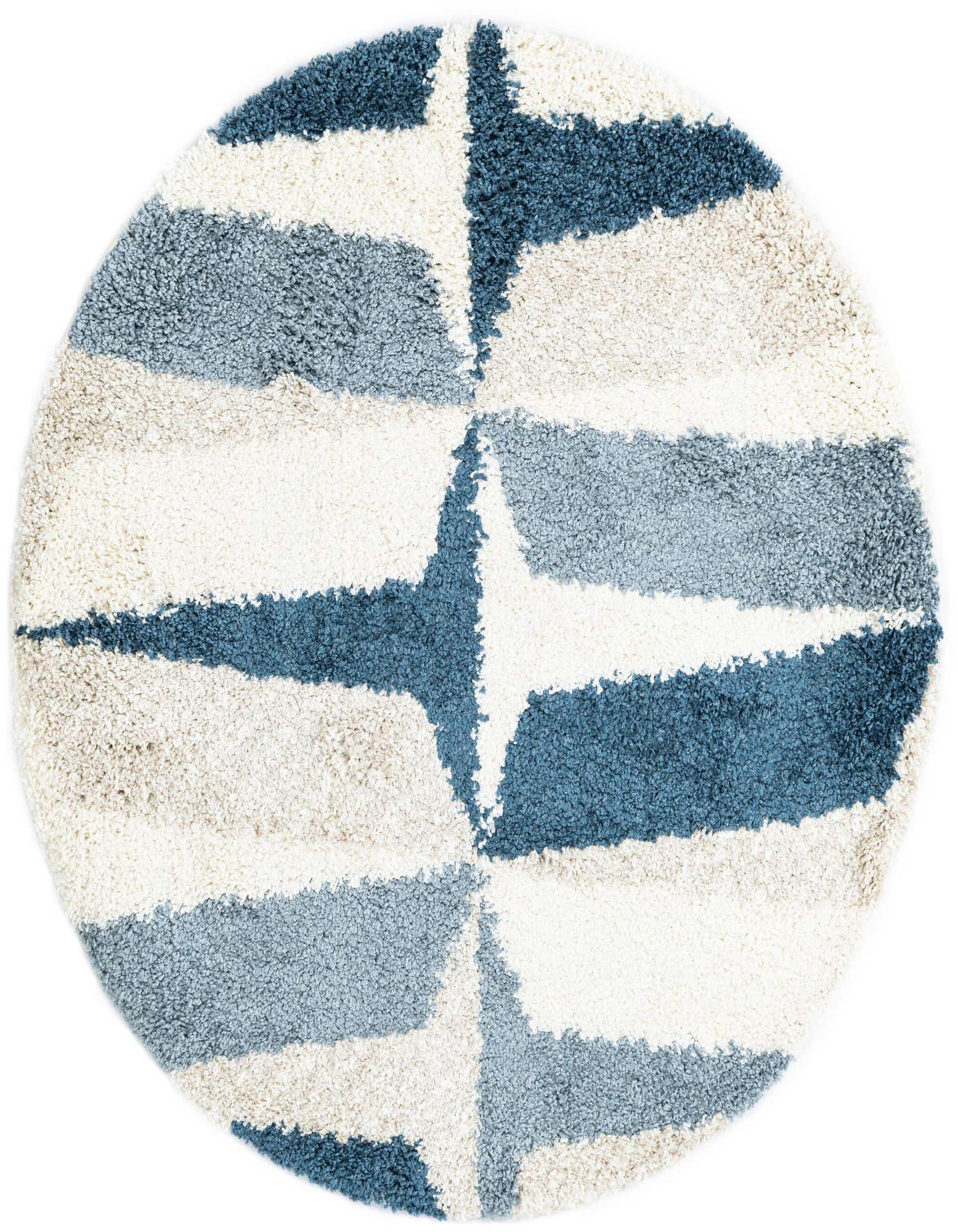 Primary color is Blue. Colors in this rug include: Blue, Ivory, Navy Blue.