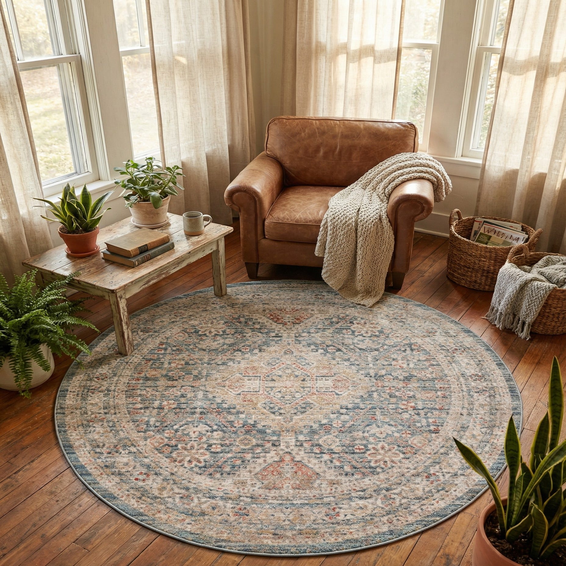 Primary color is Blue. Colors in this rug include: Blue, Beige, Gray, Ivory, Red, Pink.