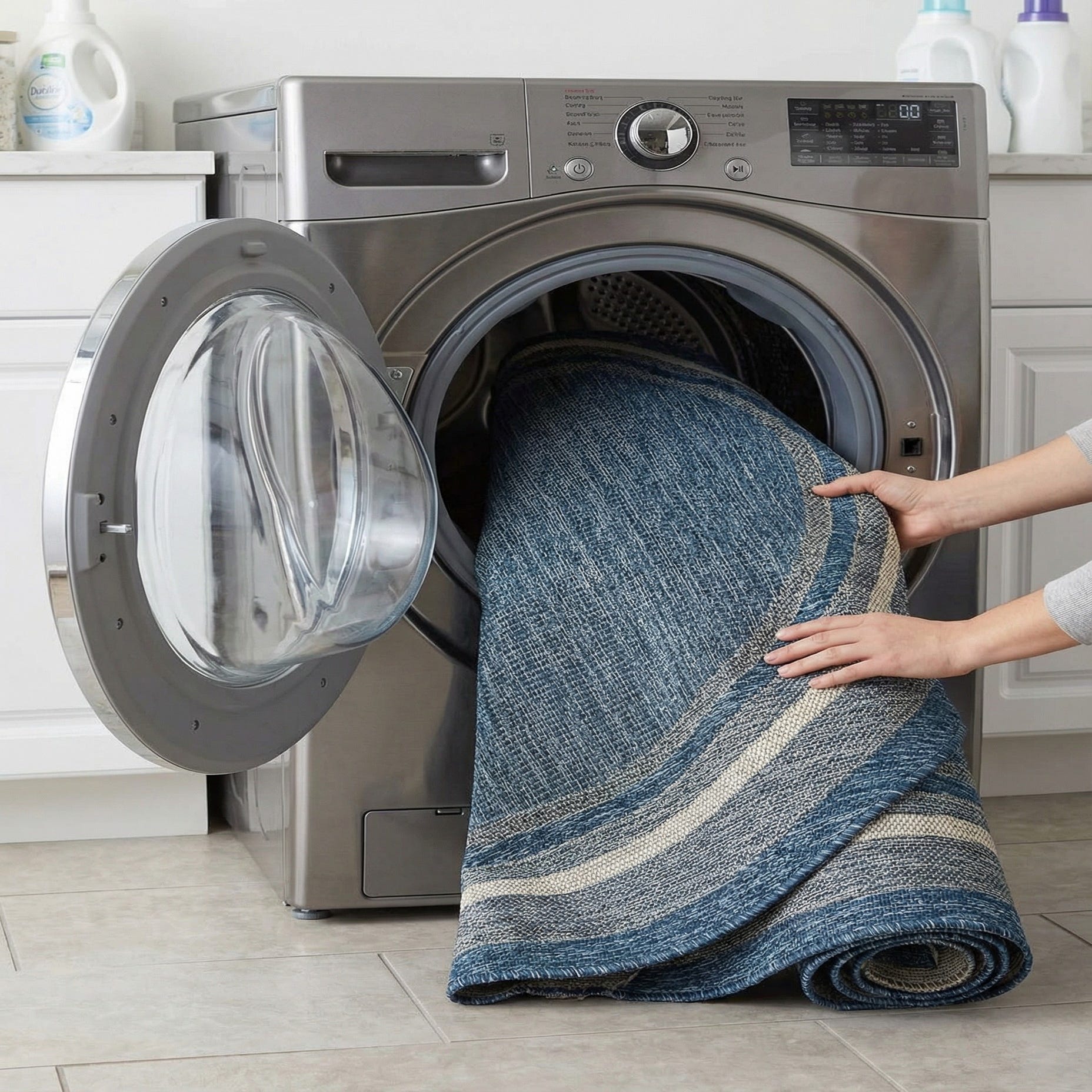 5' 3 x 5' 3 Washable Border Indoor / Outdoor Round Rug