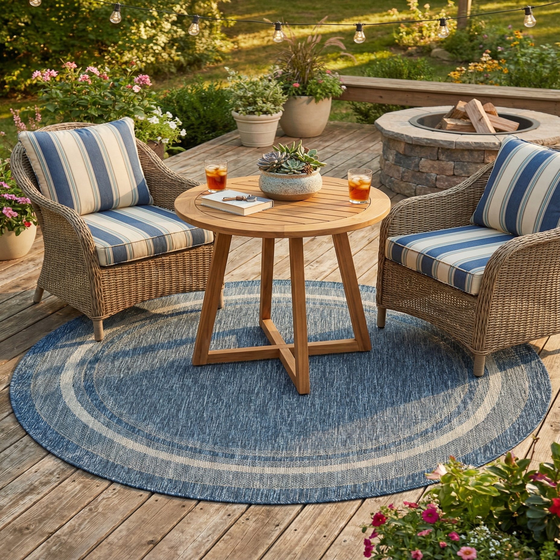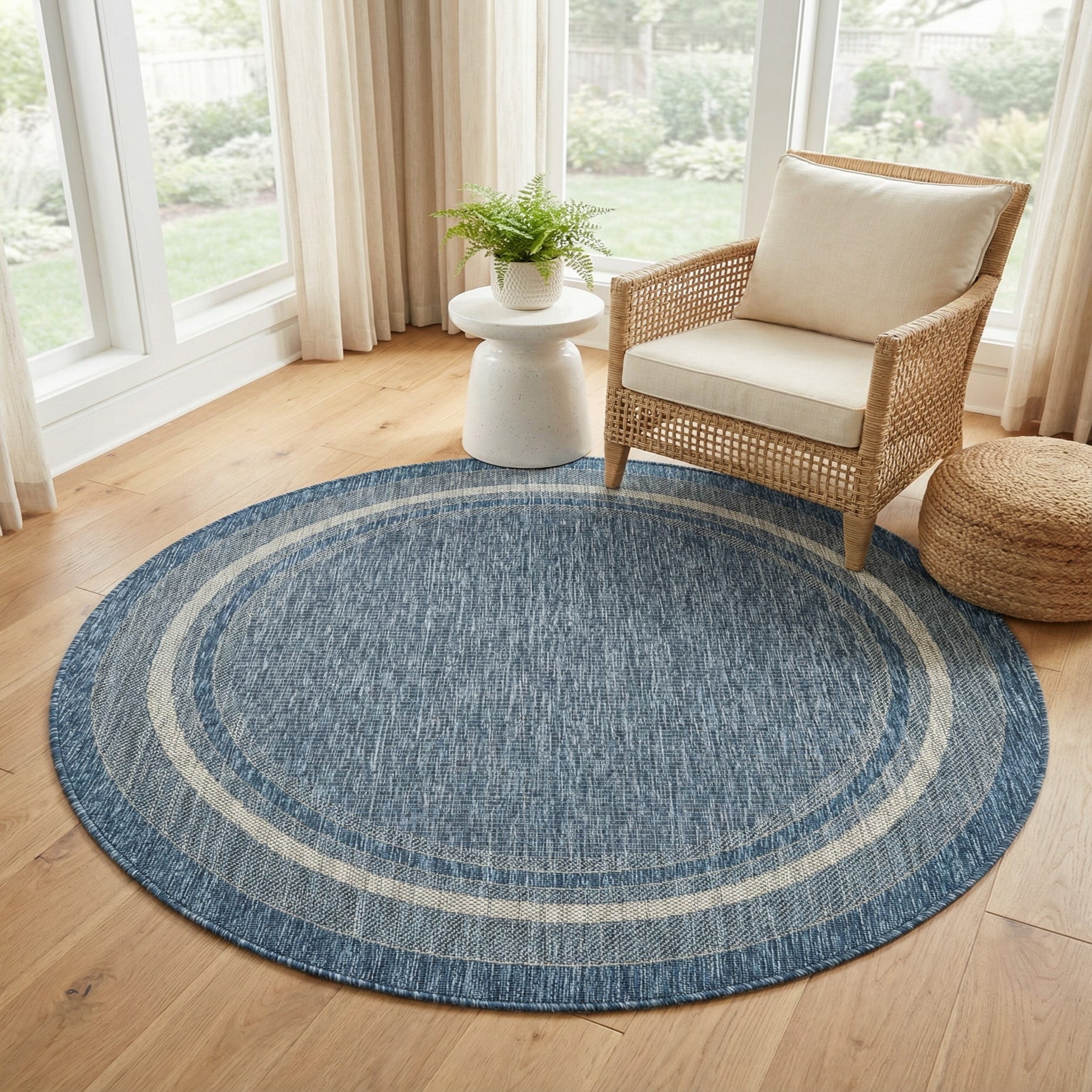 5' 3 x 5' 3 Washable Border Indoor / Outdoor Round Rug
