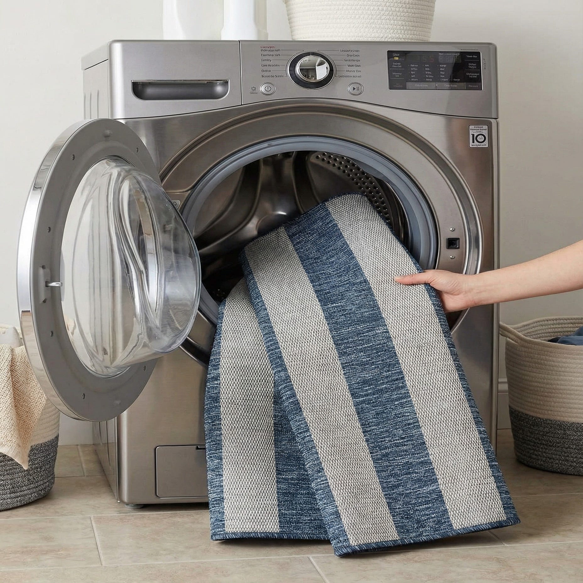 5' 3 x 5' 3 Washable Striped Indoor / Outdoor Round Rug