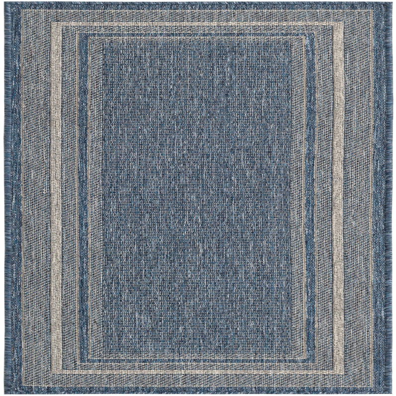 Primary color is Blue. Colors in this rug include: Blue, Navy Blue, Gray.