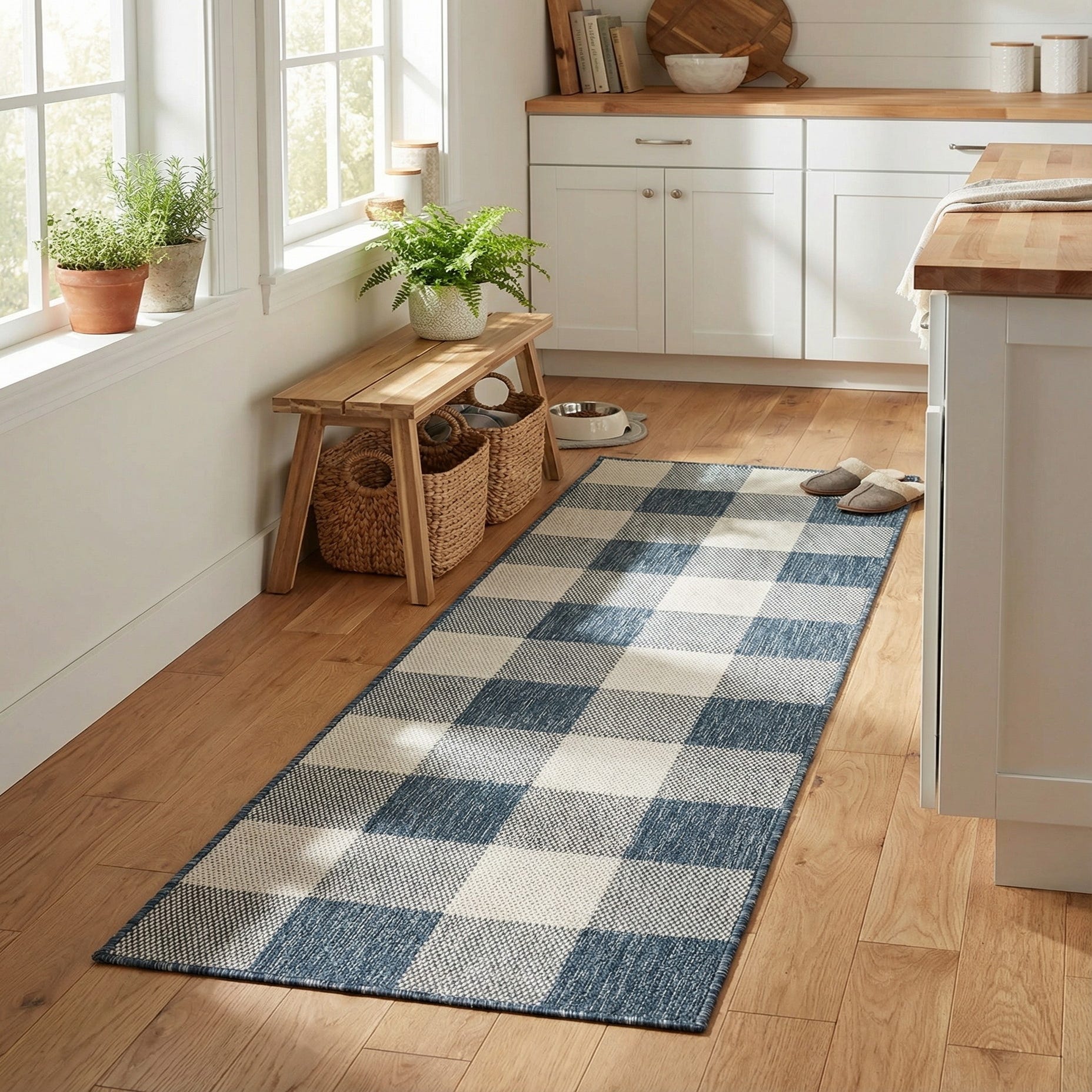 2' x 5' 3 Washable Checkered Indoor / Outdoor Runner Rug