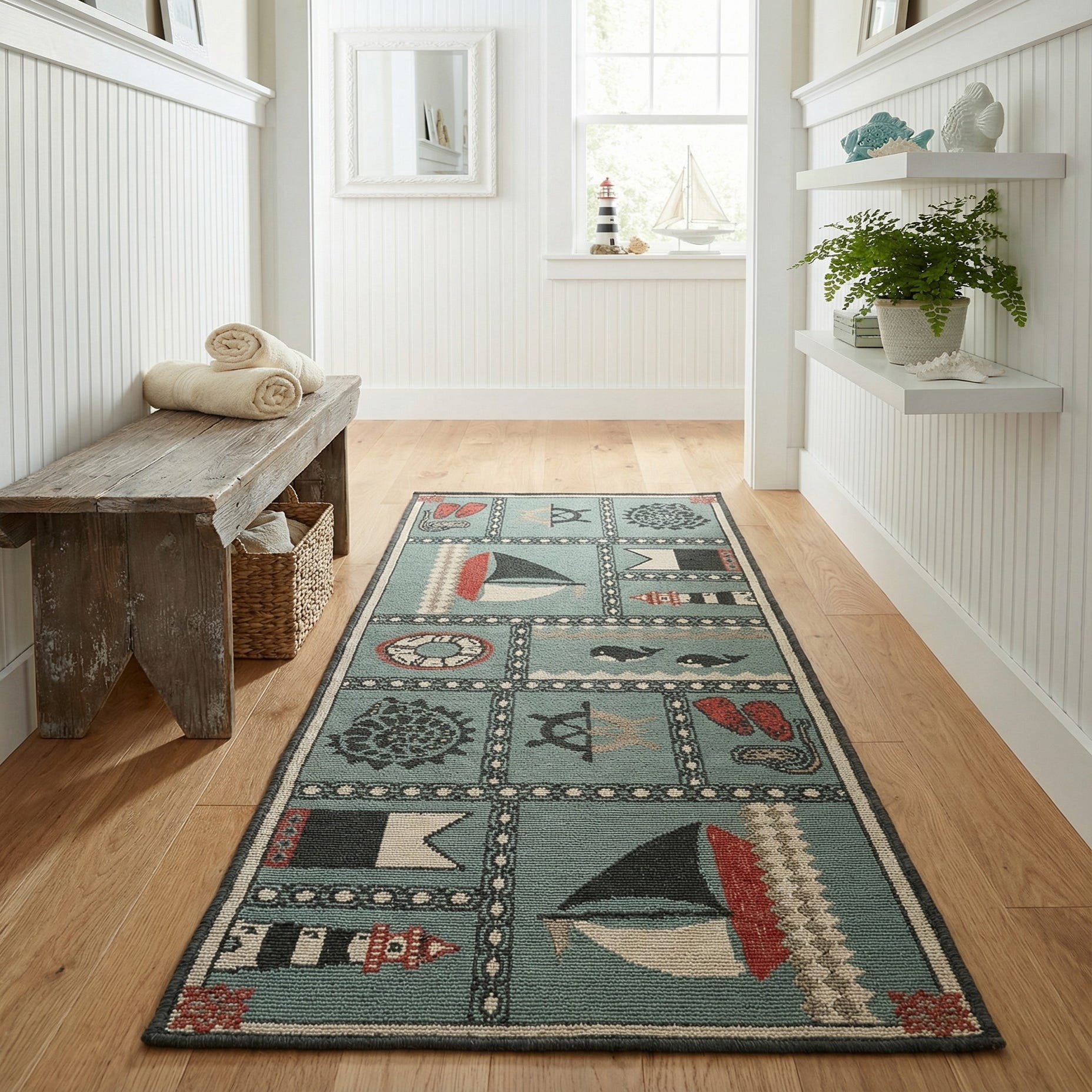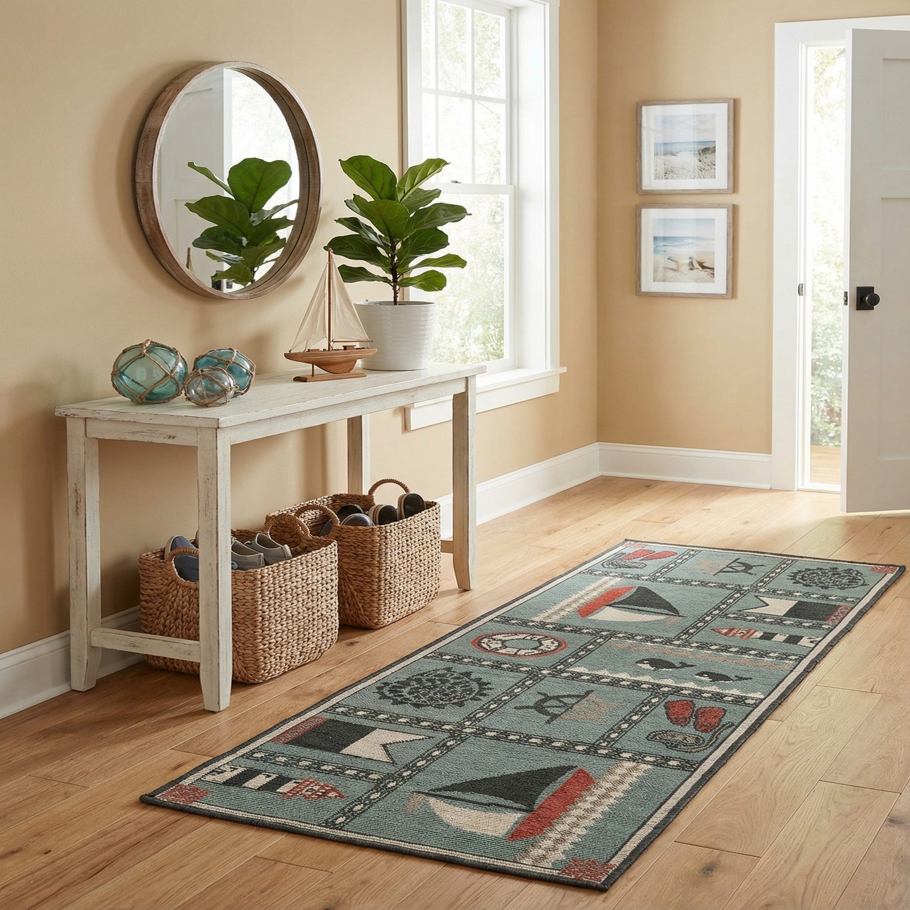 2' x 5' Washable Coastal Indoor / Outdoor Runner Rug