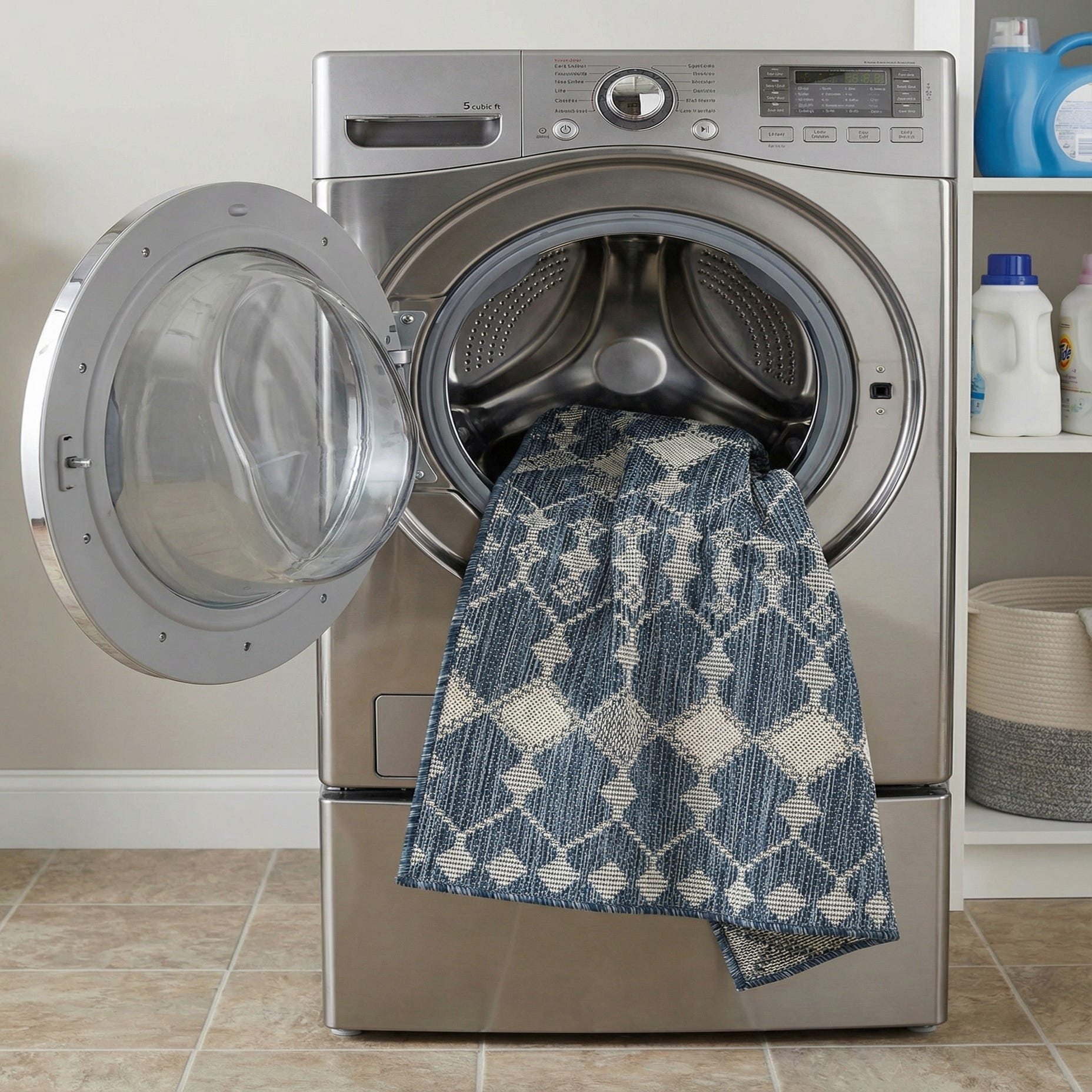 Primary image 1' 10 x 4' 6  Washable Trellis Indoor / Outdoor Runner Rug