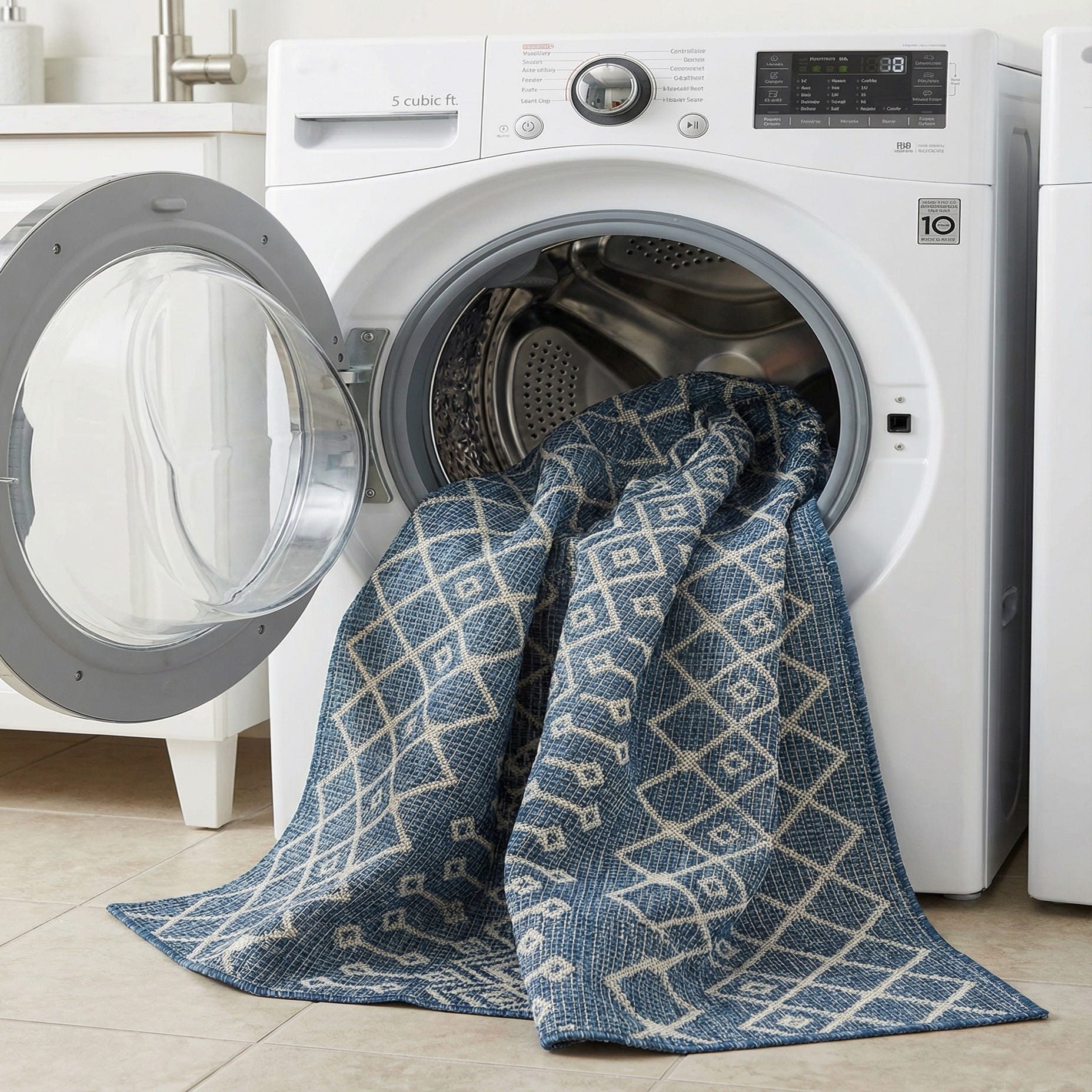 5' 3 x 5' 3 Washable Trellis Indoor / Outdoor Square Rug